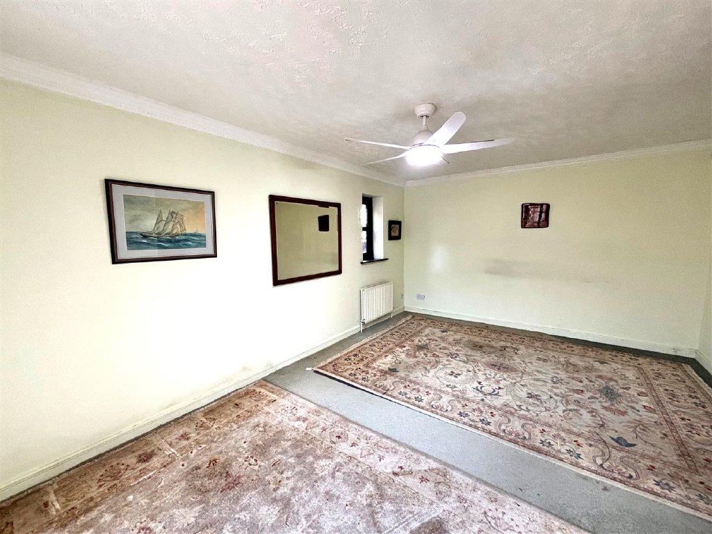 There is a fitted kitchen with Neff double oven, Smeg induction hob and 70/30 integrated fridge/freezer with space for a dishwasher, washing machine and tumble dryer over a cushion floor base. A double glazed window affords excellent views into the garden at the rear. The main bedroom has built in mirrored wardrobes and a window to the side whilst the second bedroom is oblong in design and also has a window on one wall.