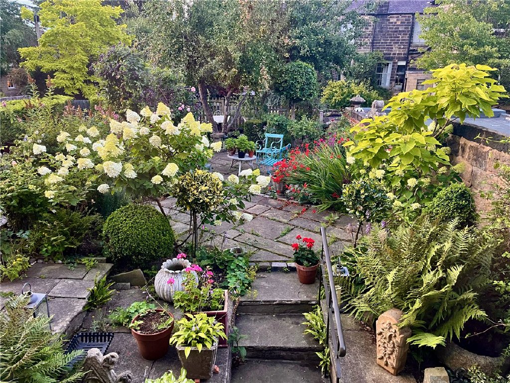 Outside, the property has a delightful flagged courtyard garden to the front, planted up with a variety of shrubs and plants together with interspersed seating areas. Beyond the garden, down a short flight of steps, is a parking space, providing useful off street parking.