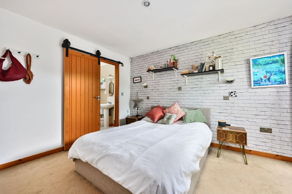 On the opposite side of this welcoming reception space lies the magnificent Principal Suite. This expansive area is designed with luxury in mind, offering ample room for a super King-sized bed, wardrobes, a dressing table, and chests of drawers. Abundant windows on either side flood the room with natural light, and French doors open to a picturesque Walled garden, highlighting a stunning apple tree as the centrepiece. Additionally, doors lead into a large walk-in wardrobe and into the ensuite bathroom, which is fitted with a modern shower, a freestanding oval bath, a wash hand basin, and a toilet, ensuring a perfect blend of comfort and sophistication. There’s a feeling of total privacy with views overlooking the front garden space.