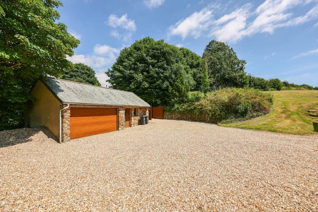 Solid electric gates provide the upmost privacy to Faunstone Barns, you arrive to a wide shingle driveway with space to accommodate easily half a dozen cars and a modern double garage with storage space.