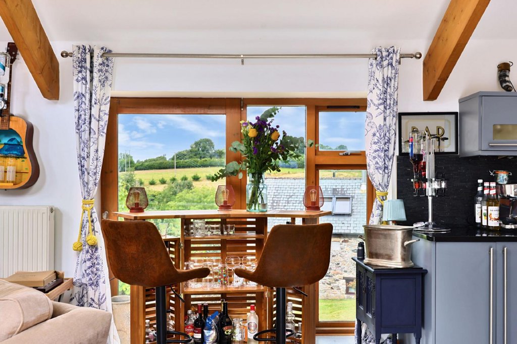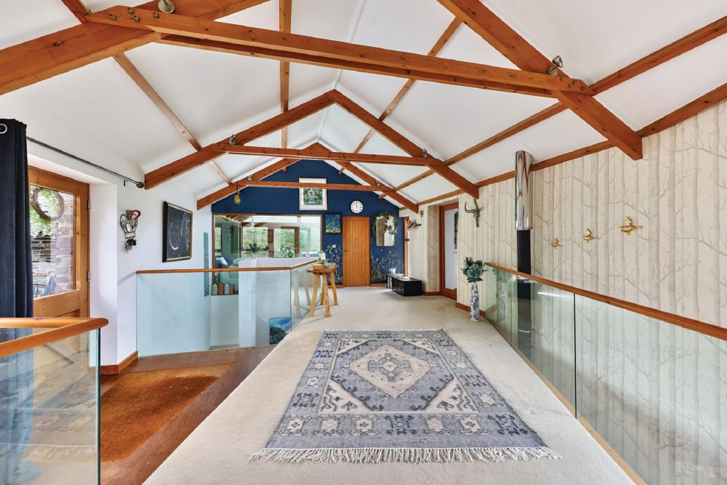 Arriving at Faunstone Barns front entrance the clever design invites you to cross over a bridge to the entrance hall, where you are greeted by a stunning tall ceilings adorned with glass banisters and a towering glass windows that frame the serene views of the walled garden and the quaint hamlet beyond. Two separate boot/coat, storage areas are located in this space.