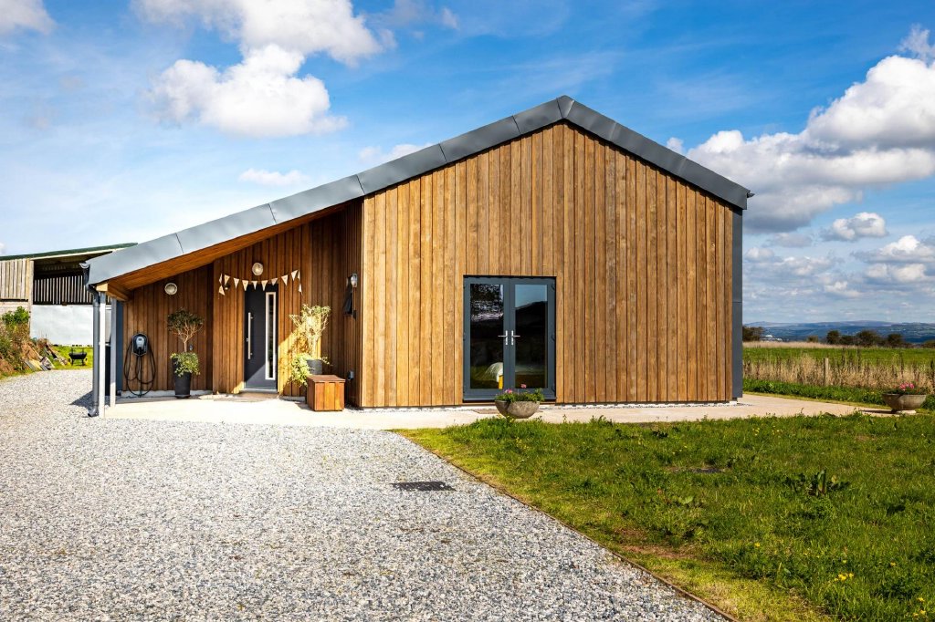 · Externally, there is a fenced garden with a wildflower meadow and large open-sided pole barn which houses a rustic fitted outdoor kitchen, patio, panoramic viewing platform and a private woodland walk around the grounds, plenty of parking and a My Energi 11kw Zappi car charger.