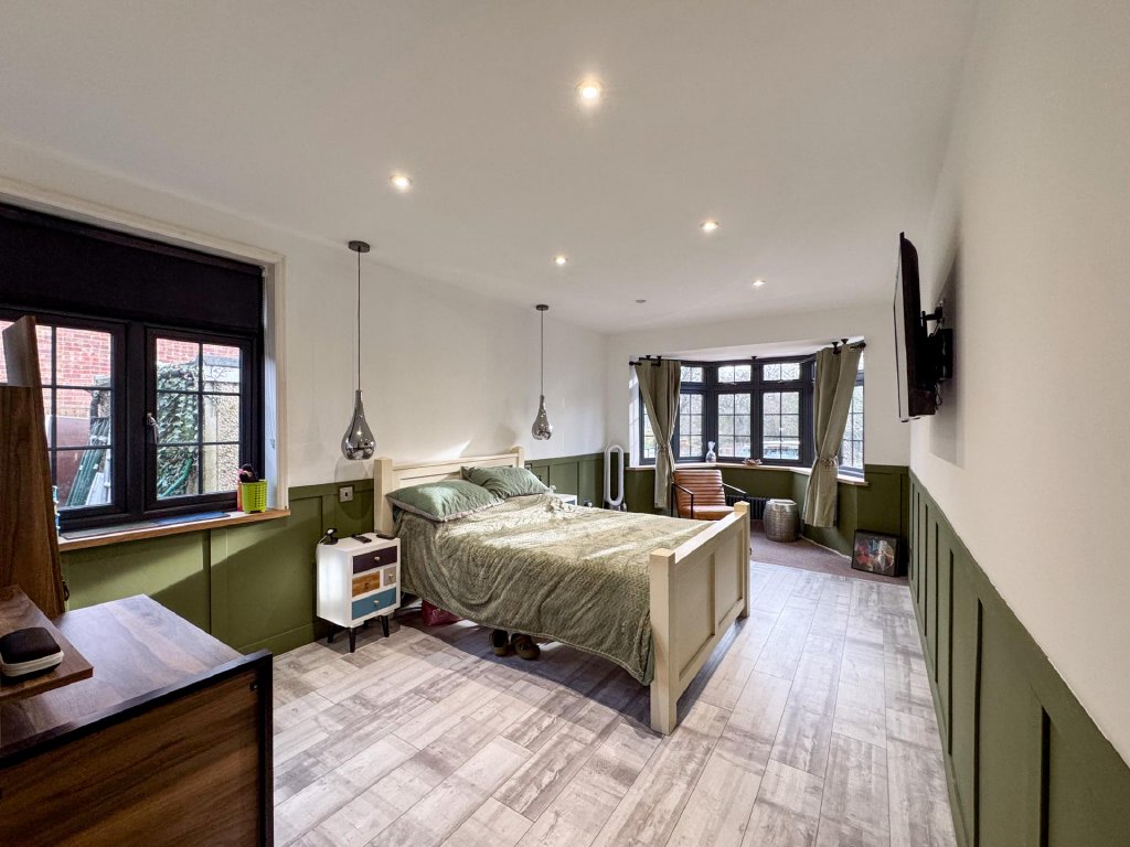Accommodation comprises three well proportioned bedrooms, including a superb principal bedroom with its own dedicated dressing area, offering a touch of everyday luxury. The remaining bedrooms are served by a sleek, contemporary family bathroom finished to a high standard, completing the accommodation.