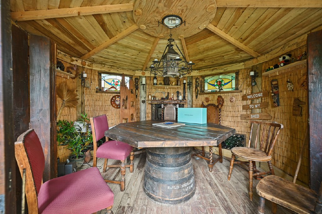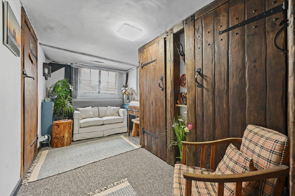 The reception room exudes old-world charm, flooded with natural light, while the thoughtfully updated kitchen provides modern functionality. The adjacent dining room, with its rustic ambiance and views of the surrounding gardens, is a perfect space for family meals and entertaining.