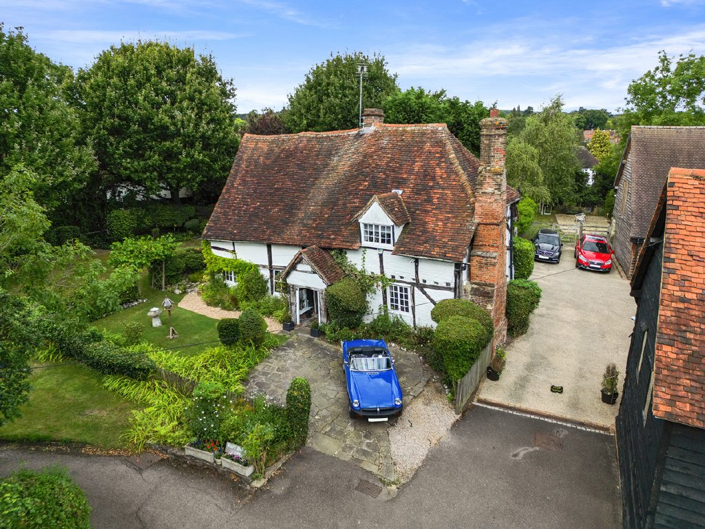 Originally built as an open-hall house, the cottage was transformed in the 17th century with the addition of a first floor and has since been sympathetically updated. It boasts an array of original features, including a latticed balustrade and a rare 17th-century hunting scene hand-painted in the dining room, making it a true historical gem.