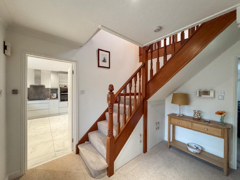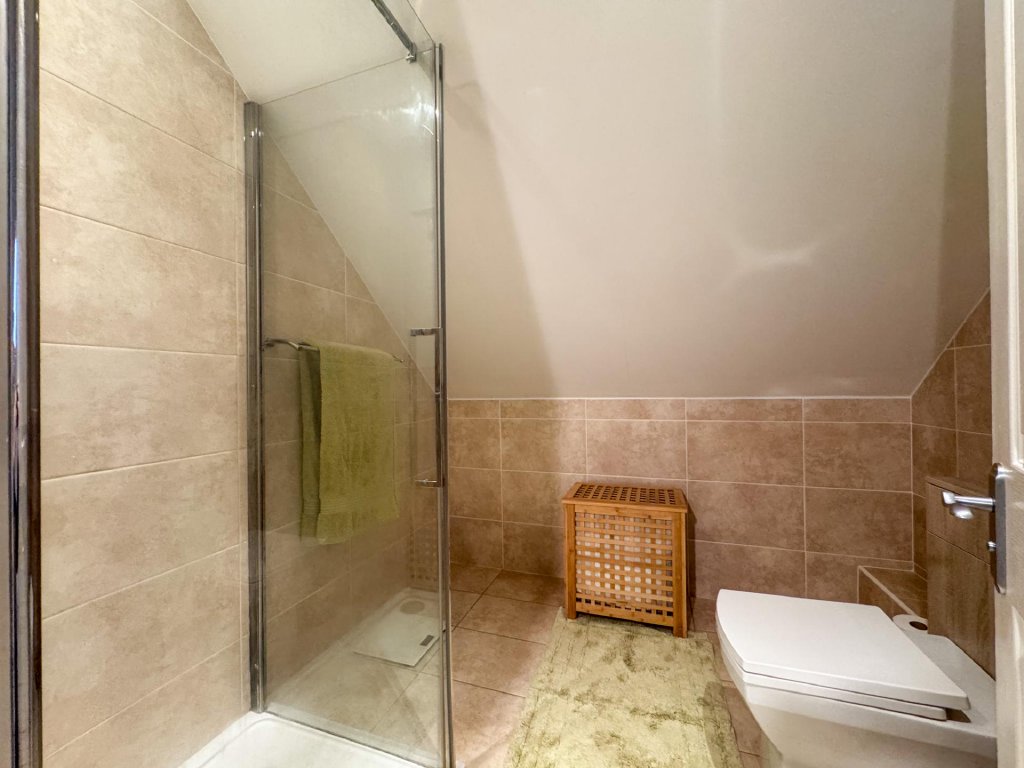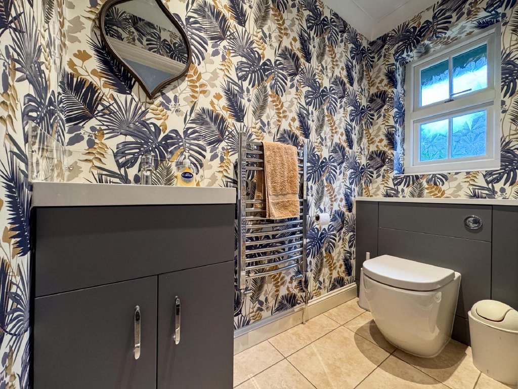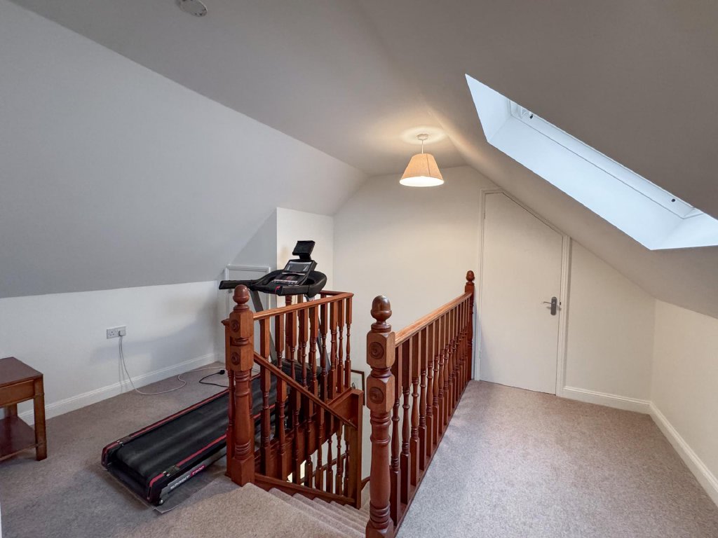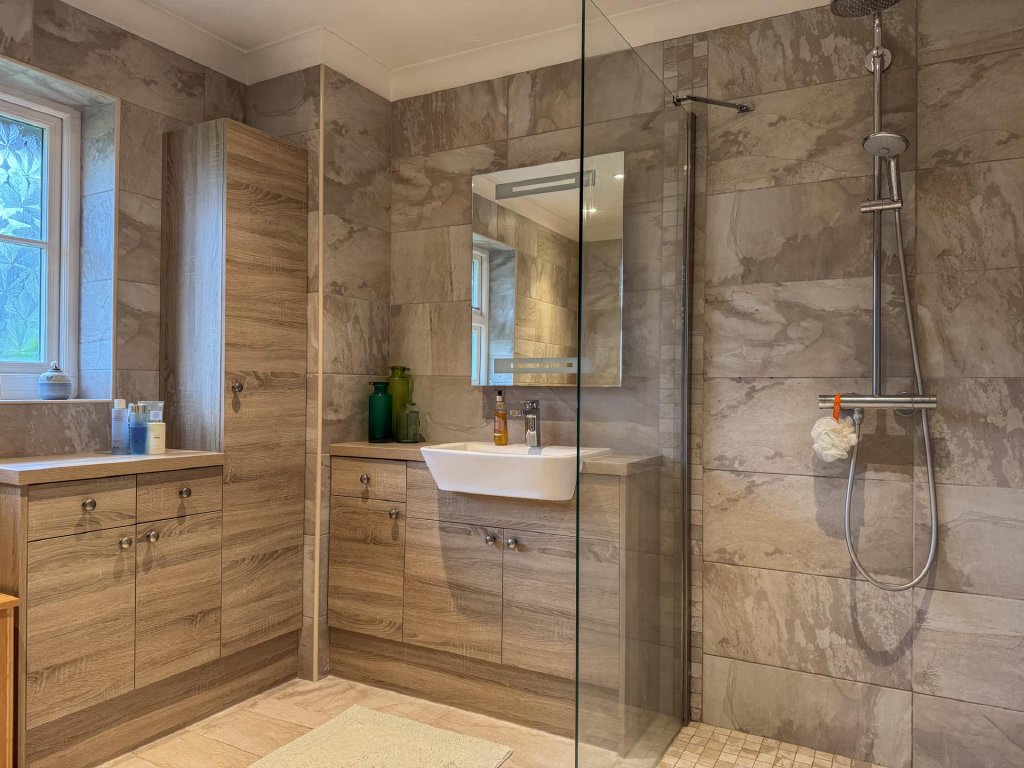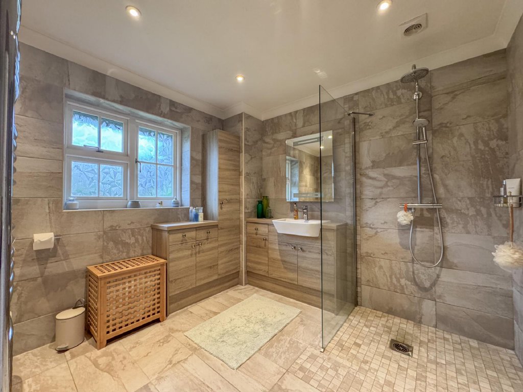 Two of the four bedrooms are positioned on the ground floor and are served by a luxurious wet room. The first floor features a galleried landing that leads to two additional bedrooms and a beautifully finished contemporary bathroom, creating highly flexible living options for families or guests.