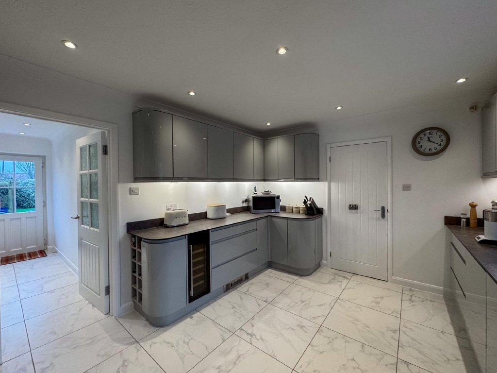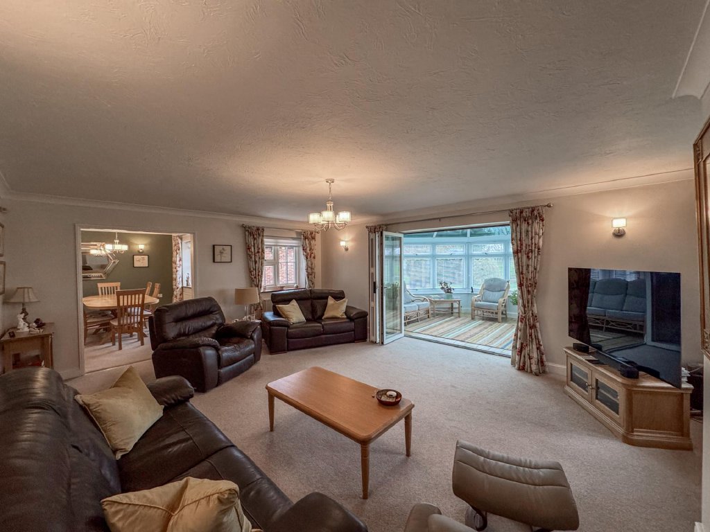 Set within approximately half an acre of grounds and offering flexible accommodation arranged over two levels, this home combines contemporary living with peaceful countryside surroundings. The property includes a modern fitted kitchen, luxury bathroom and wet room, a spacious conservatory overlooking the gardens, formal dining room, garage, ample parking and uninterrupted rural views.