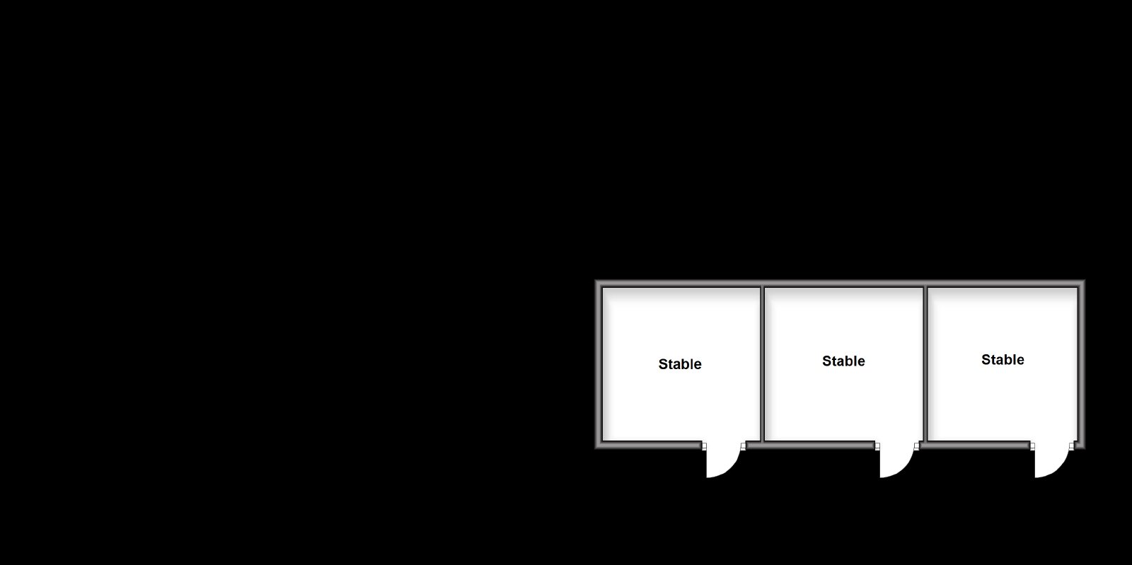 - 3 paddocks, stable block with 3 stalls and storage barn