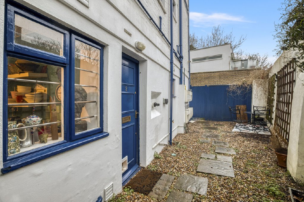 To the rear, a private patio provides an attractive extension of the living space and leads directly into a communal garden, offering a peaceful and green outlook rarely found so close to central London.