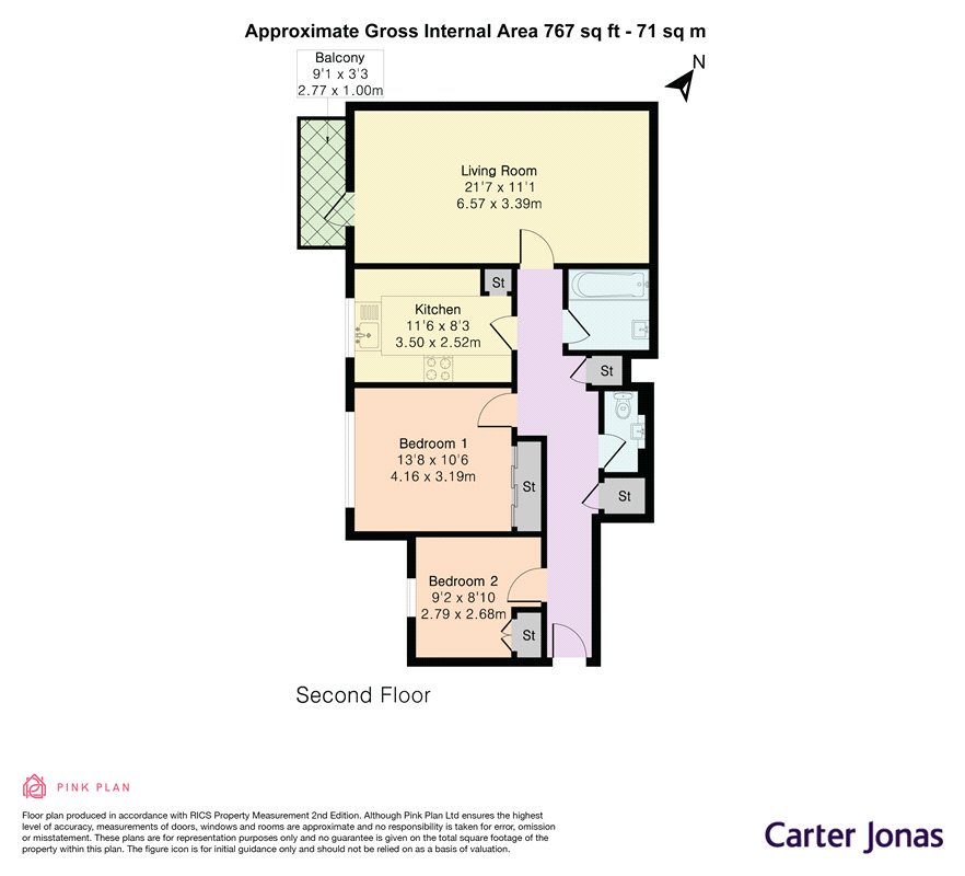 A beautiful, recently refurbished second floor apartment with a west facing balcony on very desirable Cunliffe Close. Located on the top floor, the apartment is exceptionally bright offering two bedrooms, a generous kitchen and living room designed for a dining table at one end near the kitchen and seating area with views across the balcony and beyond.