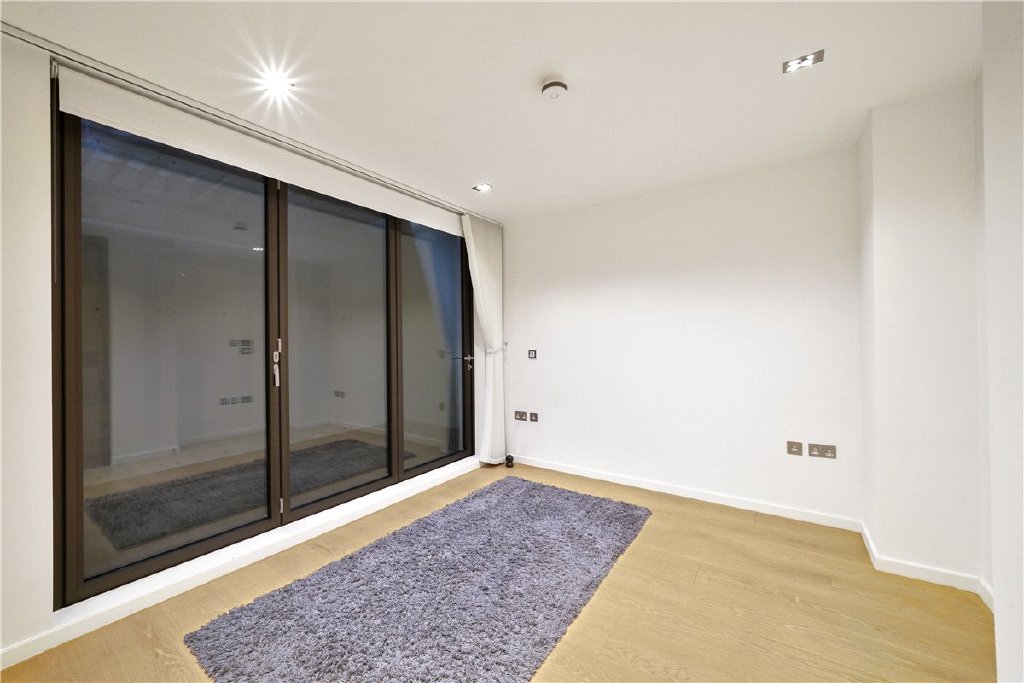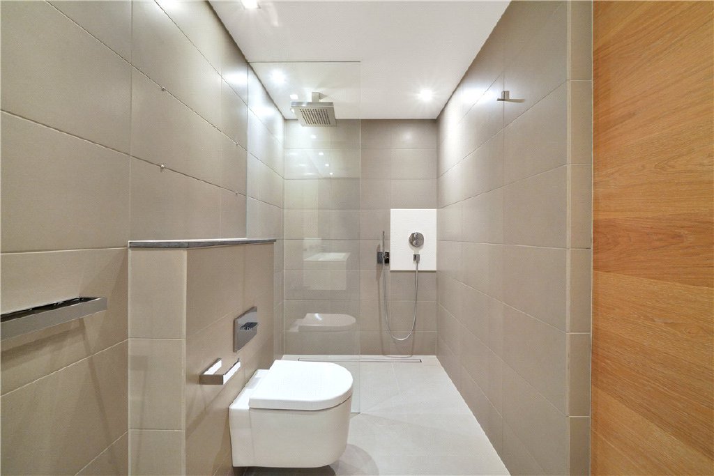Offering refined style and modern sophistication, the apartment comprises a generous reception room with an open plan kitchen, two double bedrooms with en suite bathrooms, and a separate guest cloakroom. High ceilings and floor to ceiling windows create a free flowing layout and an abundance of natural light throughout.