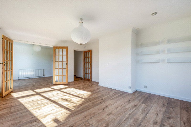 A generous front garden creates an immediate sense of space and privacy, with a pathway leading to the front door and into a welcoming entrance hall. At the heart of the property is a spacious reception hall which forms the hub of the home and allows the property to flow beautifully, providing access to the principal accommodation and offering flexibility as an additional reception space. The sitting room enjoys generous proportions and large windows which allow natural light to flood in, creating a bright and inviting space ideal for both everyday living and entertaining. Double doors connect through to the dining room, which enjoys a pleasant outlook over the rear garden and has sliding doors leading out.