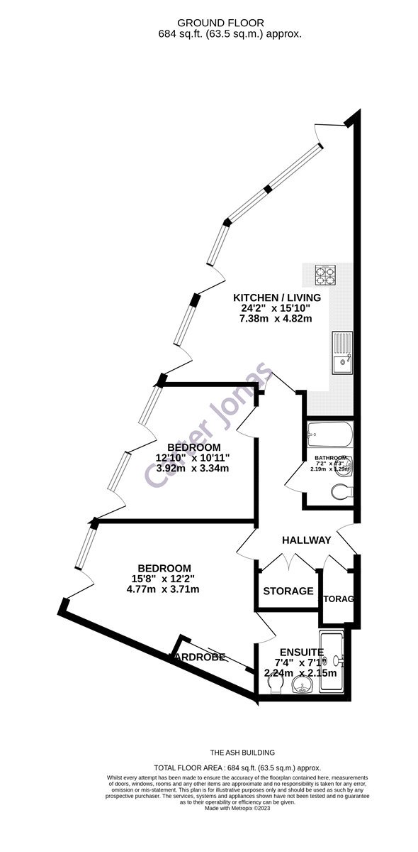 - Total sq ft: 684