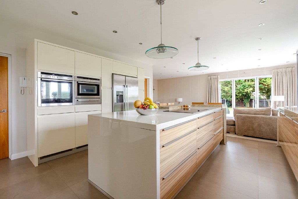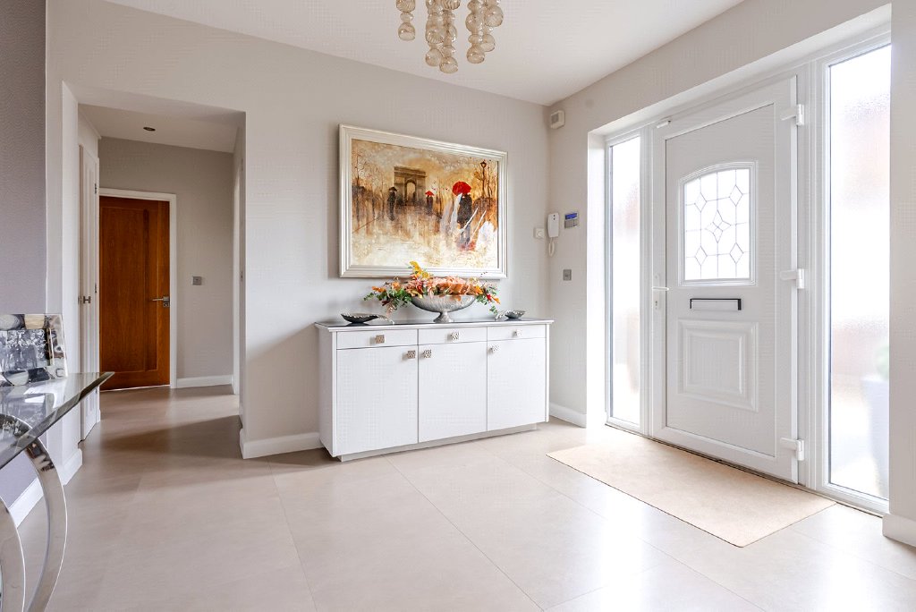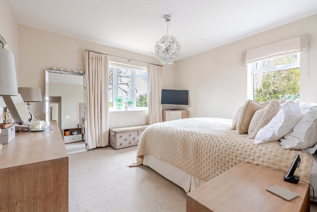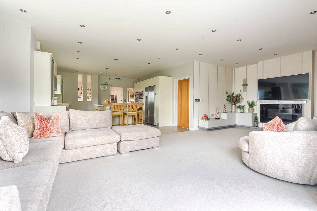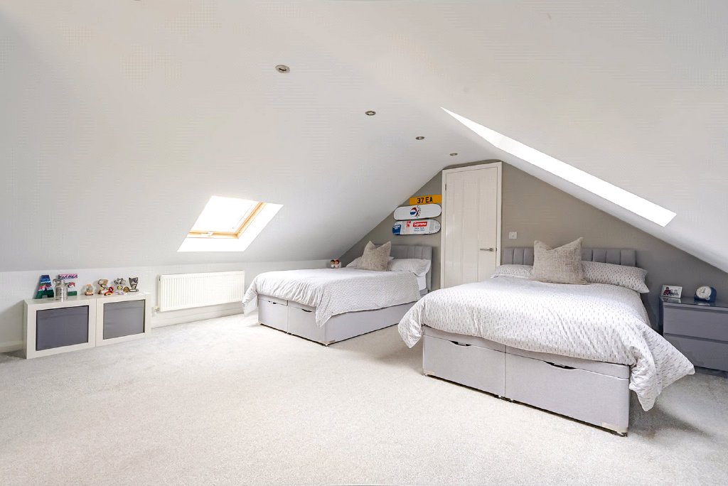 Occupying a substantial corner plot, the property immediately conveys a sense of privacy and scale, both internally and externally. The accommodation is thoughtfully arranged to suit modern family life, with four well-proportioned double bedrooms, complemented by two bespoke dressing rooms and three beautifully appointed bathrooms. Underfloor heating runs throughout the home, ensuring a luxurious and comfortable environment in every season.
