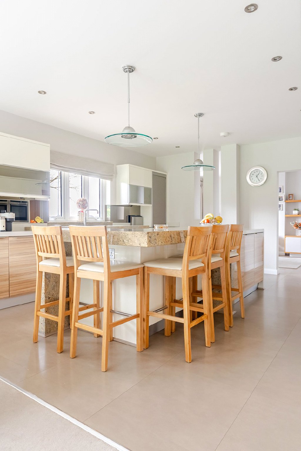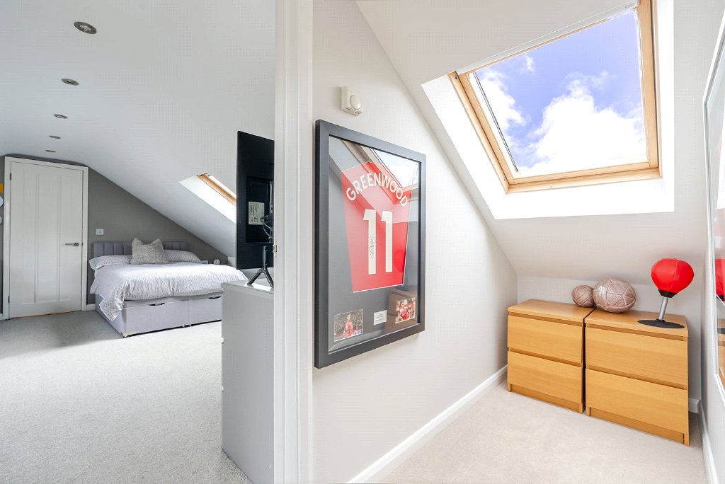 At the heart of the property lies a seamless balance between practicality and style. A dedicated study provides the ideal setting for home working, while the utility room offers valuable additional storage and functionality. Standout features include a bespoke wooden and glass staircase, electric window blinds, and a comprehensive CCTV system, reflecting the meticulous attention to detail found throughout.