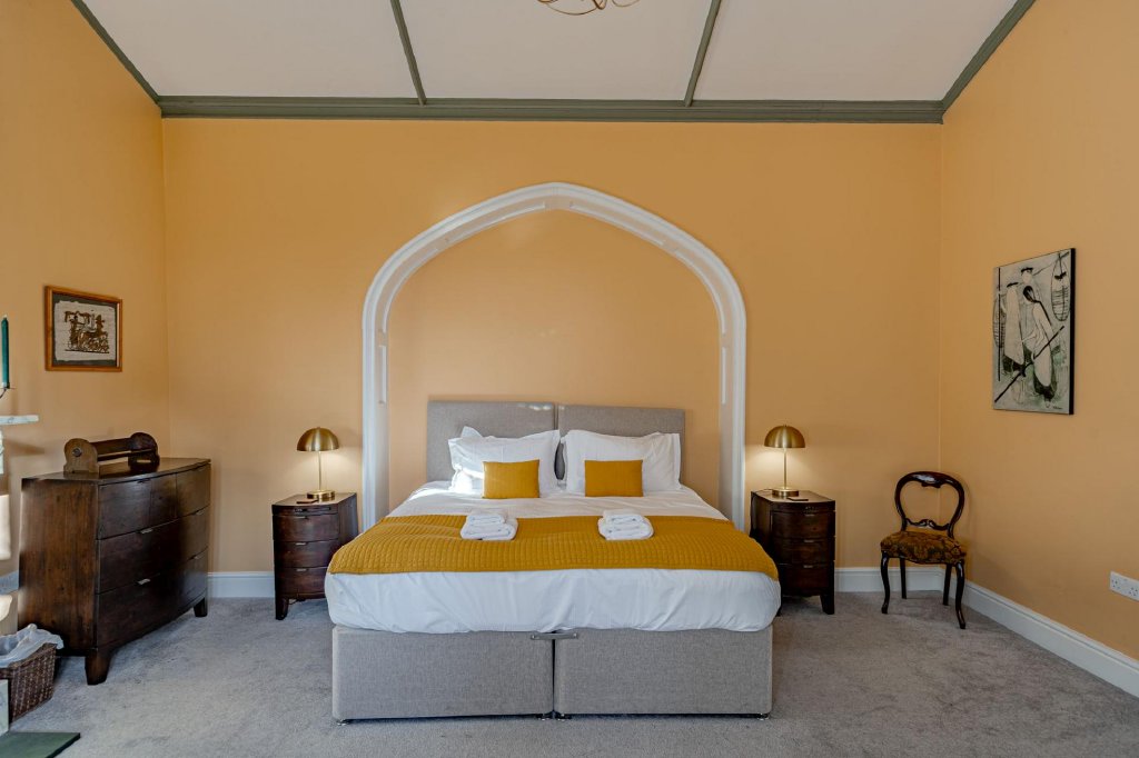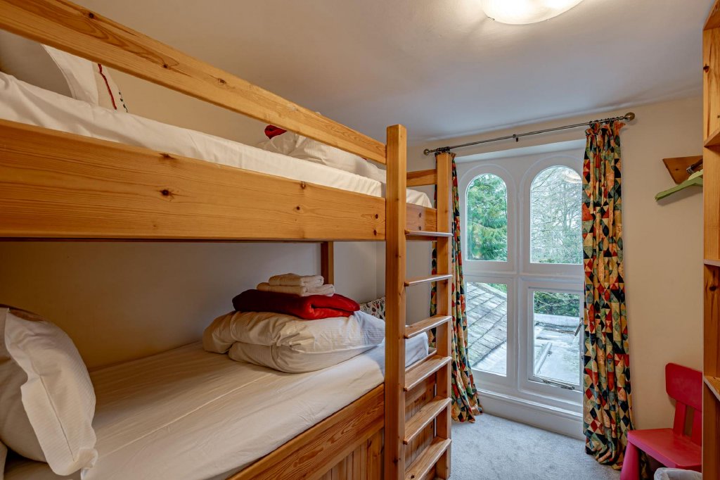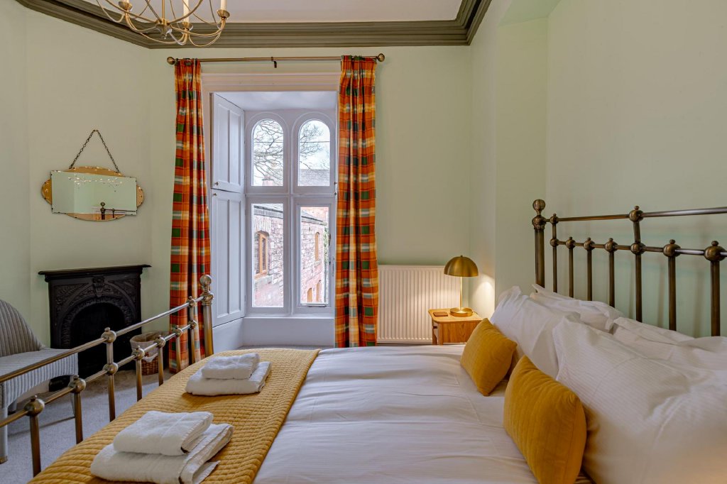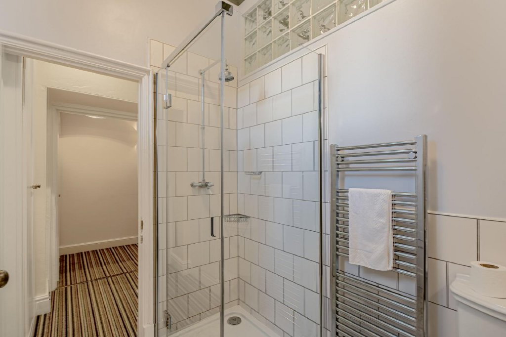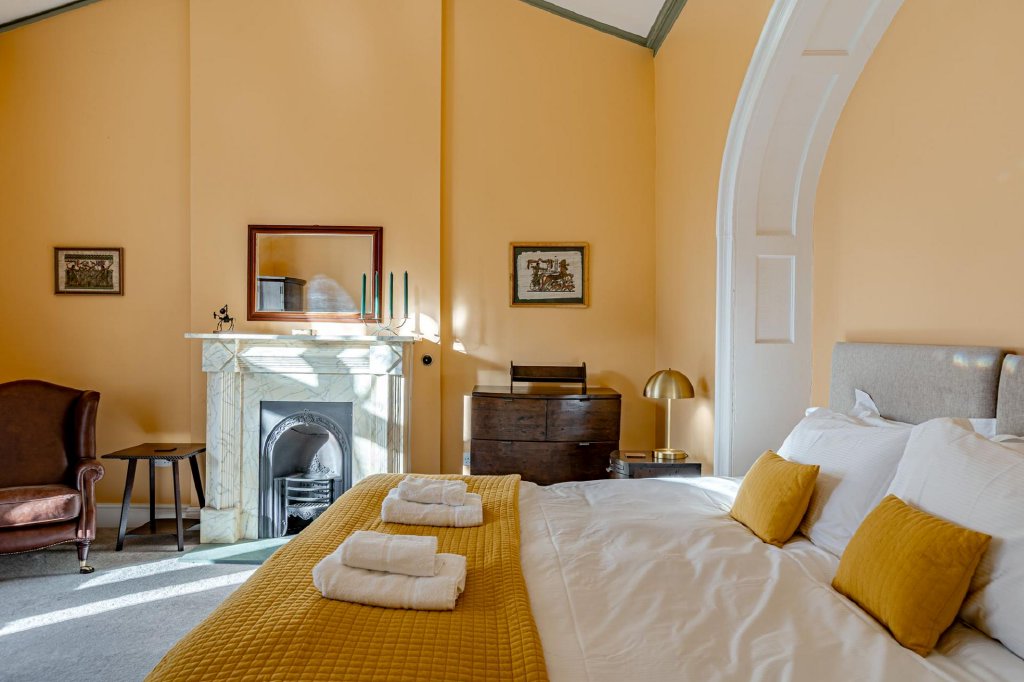 The upper floor hosts two further generous bedrooms, both rich in character with period ceilings, one decorative and period fireplaces. There is an additional single room on this floor, currently fitted with bunk beds. The third bathroom is fully tiled and features heritage-style fittings, including a walk-in shower, WC, wash basin and heated towel rail.