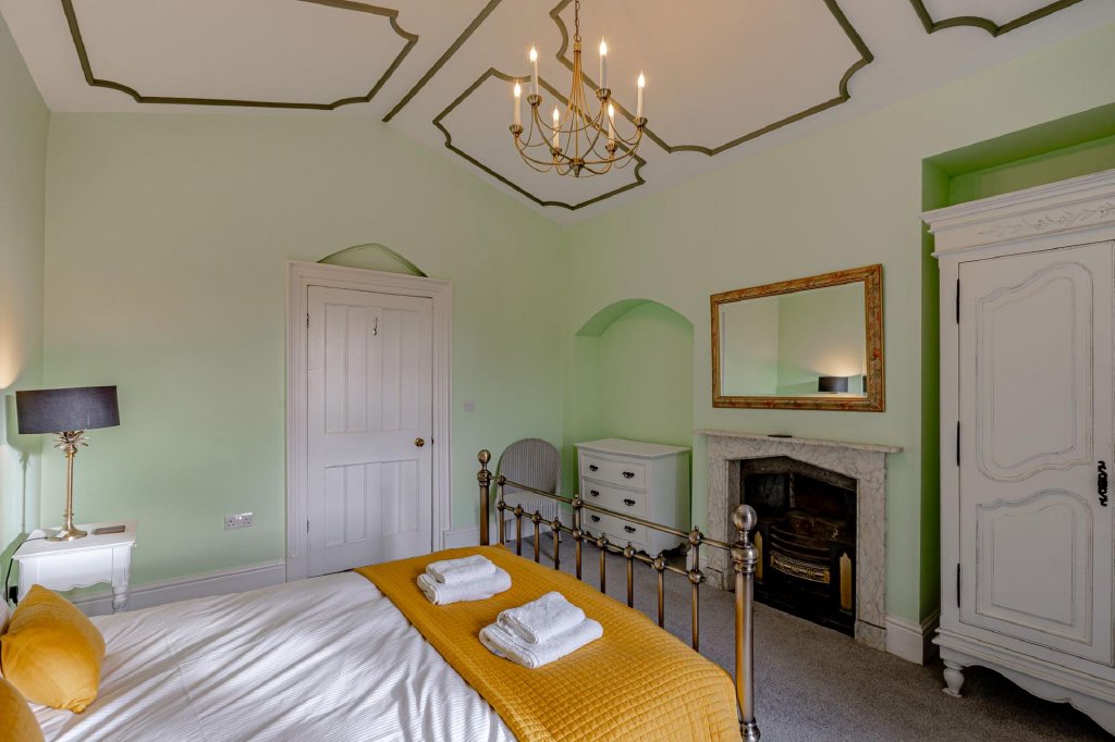 Adjacent to the bathrooms is a large double bedroom with period fireplace, decorative ceiling and views over the garden, making it ideal for independent living if required. There is also an additional bedroom that could equally serve as a study or playroom.