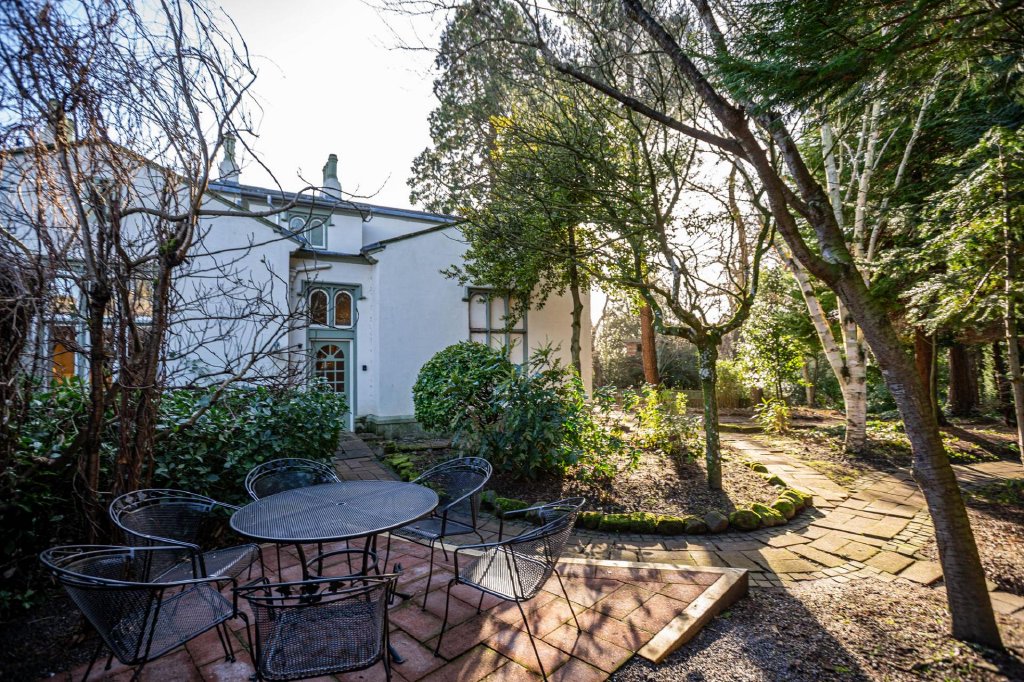 The property is accessed via stone pillars, with a short private driveway and parking for up to five cars. The gardens are a standout feature and reflect the property’s history as a nursery offering both privacy and ample space for both relaxation and play. A pond, fed by property run-off, sits to the front and could easily be replaced with lawn if preferred. The grounds also feature specimen trees, a stumpery, raised beds, swings and a tree house, all enclosed within a walled garden.