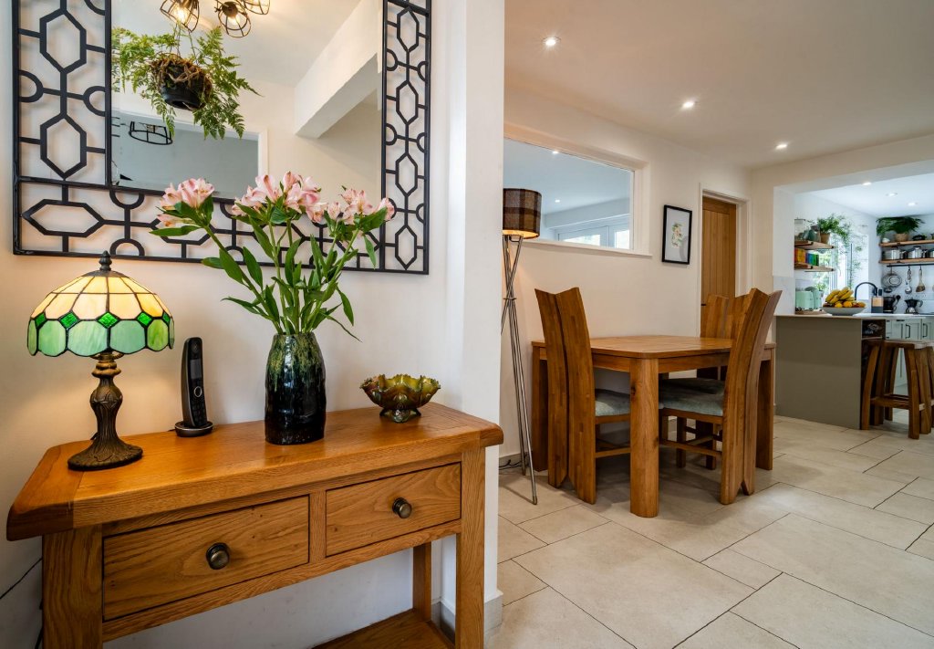 To the first floor are three bedrooms and a contemporary bathroom. The property further benefits from a range of energy-saving features, contributing to a strong EPC rating of D.