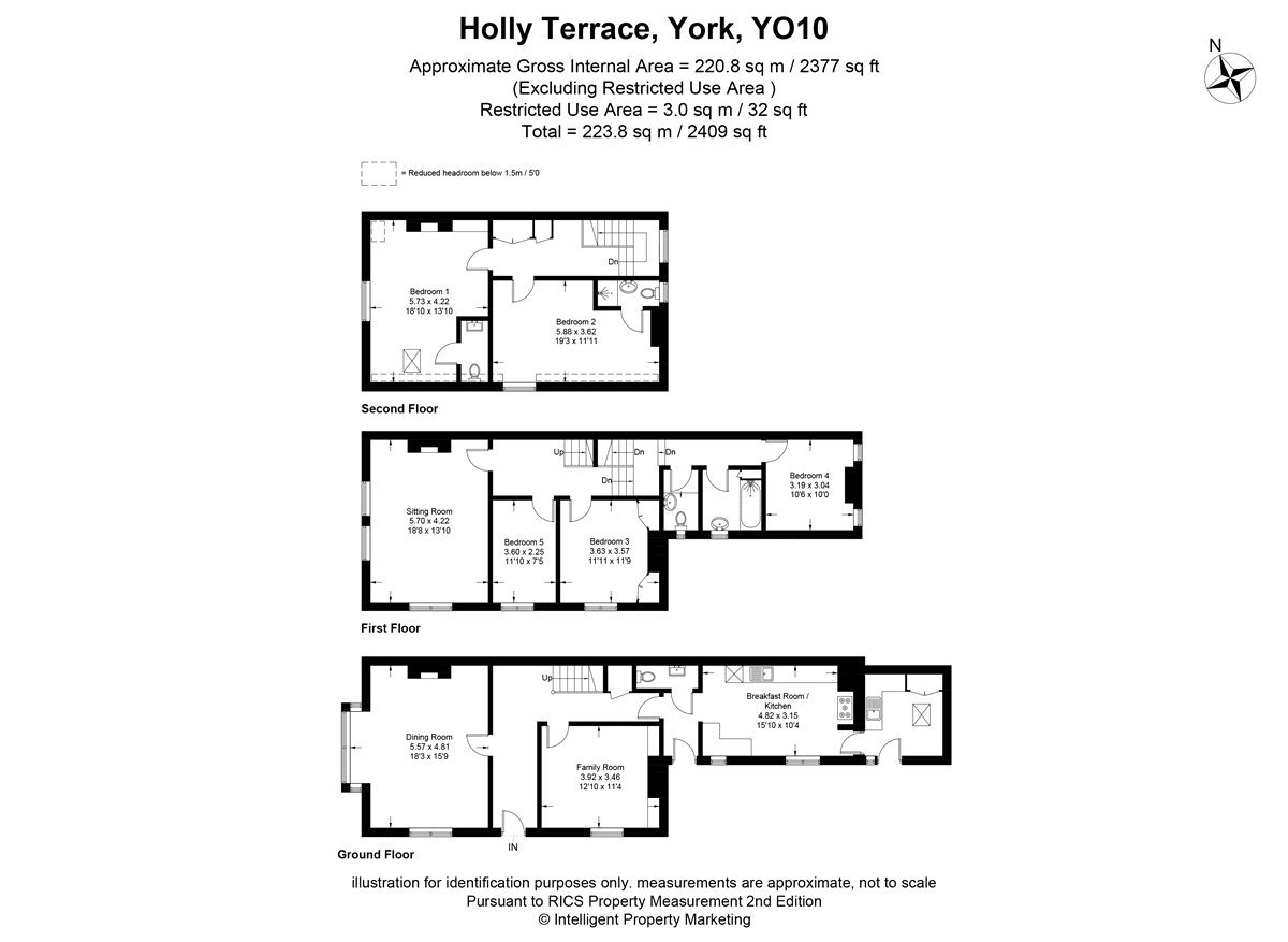 Externally, the property benefits from a front terraced garden overlooking the river, while to the rear there is a walled courtyard providing off-street parking. Holly Terrace is widely regarded as one of York’s most desirable residential addresses, offering direct access to riverside walks, the Millennium Bridge and Rowntree Park, with straightforward access to the city centre, the A64 and the University of York.