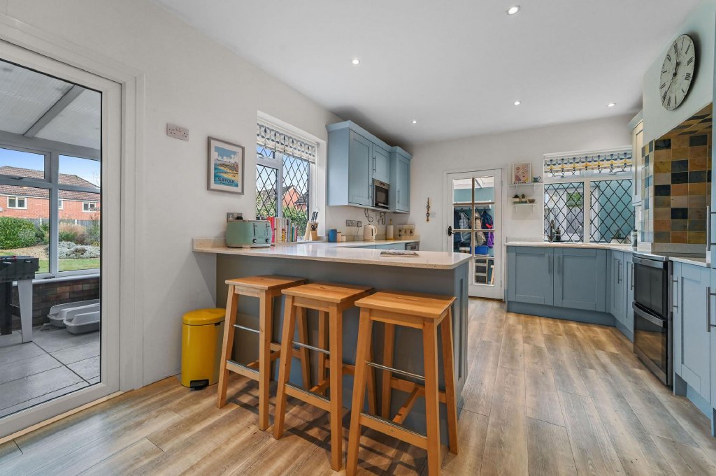 At the heart of the home sits an attractive kitchen diner - a sociable, well-proportioned space that invites lively family dinners and relaxed entertaining. The Shaker-style kitchen has a timeless feel and is complemented by a practical peninsular island that's ideal for morning coffee, casual meals or homework sessions while dinner simmers away. There's plenty of space for a dining table, making this space a true hub of the home rather than a pass-through.