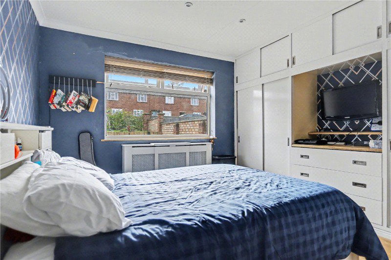 Both bedrooms are accessed from the hallway and are well-proportioned doubles. The principal bedroom sits to the front of the property, while the second enjoys a peaceful outlook over the garden and offers flexibility as a guest room, dressing room or ideal home office. The contemporary bathroom completes the accommodation, fitted with a pristine three-piece suite and shower over the bath.