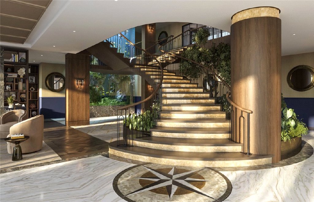 Jade Wharf forms part of the acclaimed London Dock development, a striking project by Patel Taylor. Residents benefit from an impressive range of private facilities, including a fully equipped gym, squash court, swimming pool, virtual golf suite, cinema, and elegant lounges designed for relaxation or remote working. The Mauretania Lounge, with its sweeping staircase and striking double-height aquarium, adds an elegant focal point that elevates everyday living.