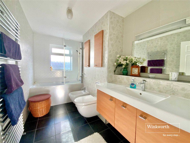 There is a separate family bathroom with side aspect window and suite comprising bath with shower over, wash hand basin, bidet and w.c. with heated towel rail and vanity units.