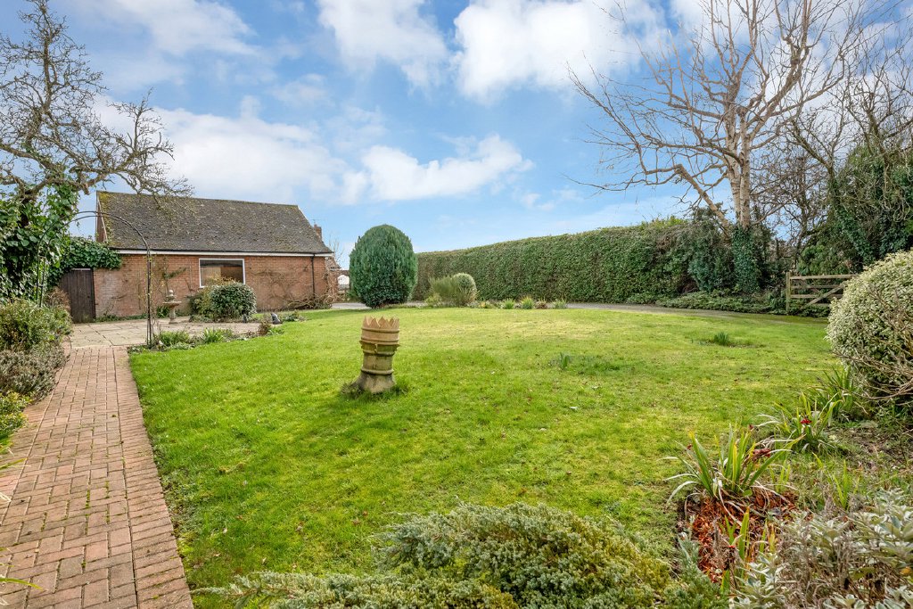 The property stands in mature grounds of 0.29 acres in total. Approached via a private gated driveway, Wisteria offers ample off-road parking to the front. The mature front garden is attractively enclosed by established hedging and brick walls, with a variety of plants and shrubs providing colour and privacy, alongside a pleasant patio seating area. To the rear, the garden is predominantly laid to lawn with an additional patio area. There is an oil tank discreetly positioned to the side of the property which serves the AGA.