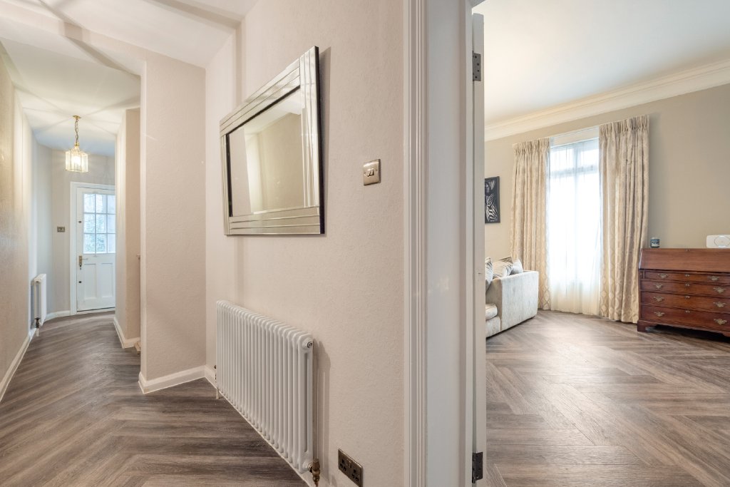 Set within an elegant period building in the heart of Cheam Village, this beautifully appointed three-bedroom ground floor apartment effortlessly combines timeless character with contemporary comfort. Rich in architectural charm, the property showcases high ceilings, generous proportions and classic detailing, all thoughtfully enhanced to suit modern living.