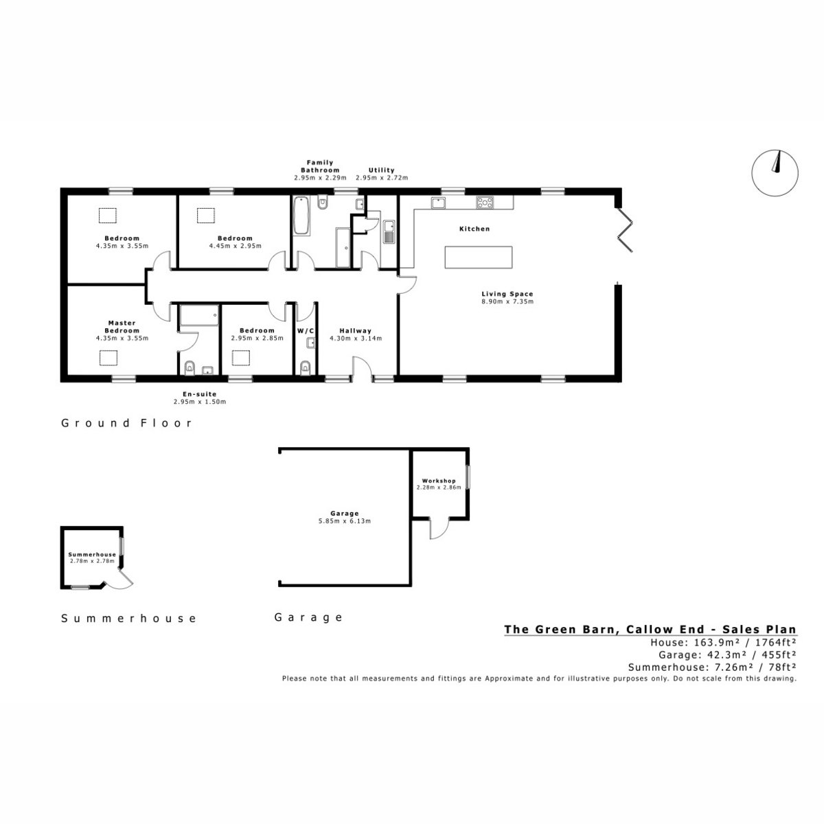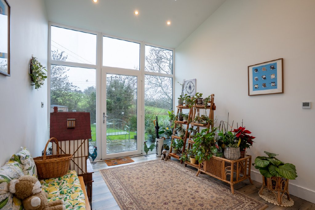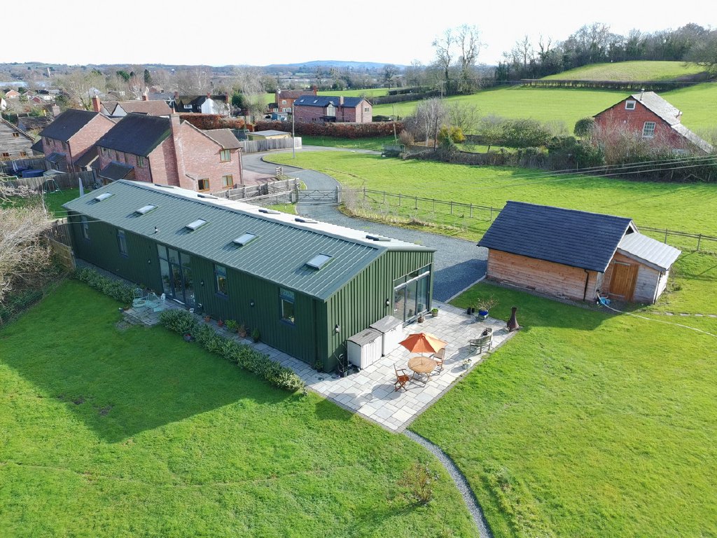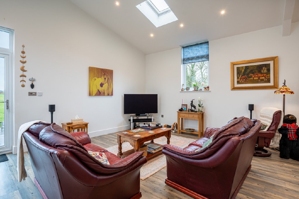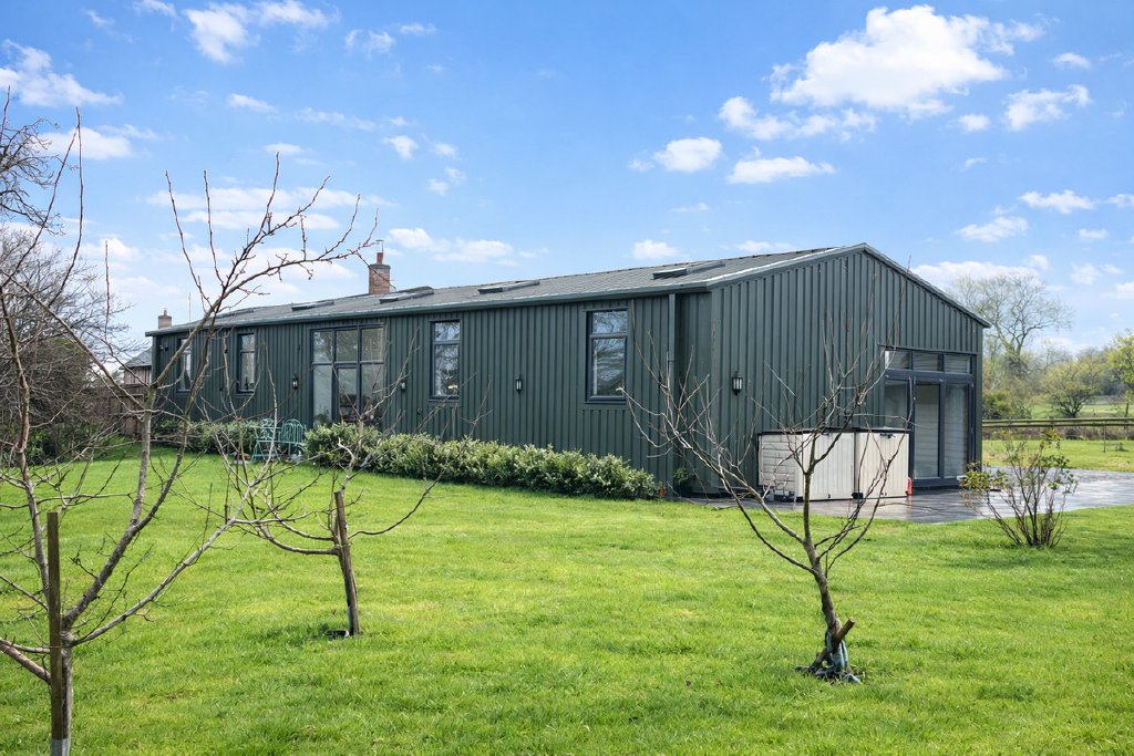 Green Barn is an immaculately presented Class Q conversion redefining contemporary country living. Set within approximately 5 acres of private west-facing grounds, this detached home blends architectural clarity with outstanding energy efficiency, including solar panels and a 9.6kW battery system. A spacious reception hall leads to a vast open-plan kitchen, dining and living space, where stylish cabinetry, automatic skylights and bi-fold doors frame far-reaching views. Four bedrooms and two bathrooms are supported by a practical utility room. Externally, gated access, an oak-framed double garage with workshop and EV charging outlet, orchard, summer house and paddock deliver privacy, flexibility and lifestyle appeal. Set in a sought-after location with excellent connectivity to local travel infrastructure, Green Barn offers rural lifestyle with practicality.