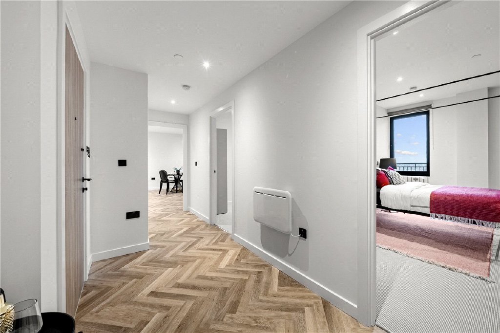 Both bedrooms are well-proportioned doubles, with the principal bedroom particularly spacious and benefitting from its own en suite shower room. A stylish main bathroom serves the second bedroom and guests, ensuring the apartment offers both comfort and practicality.