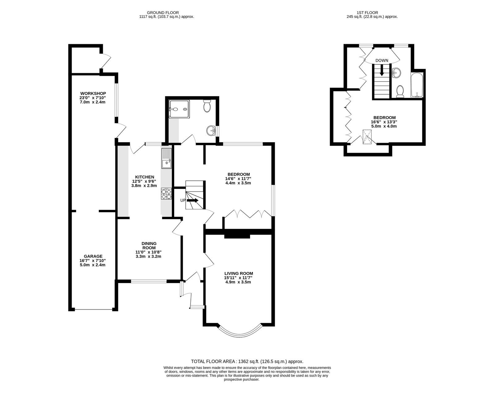 Attached to the property is a garage and a sizeable workshop/storage space behind which has a personal door out to the garden.