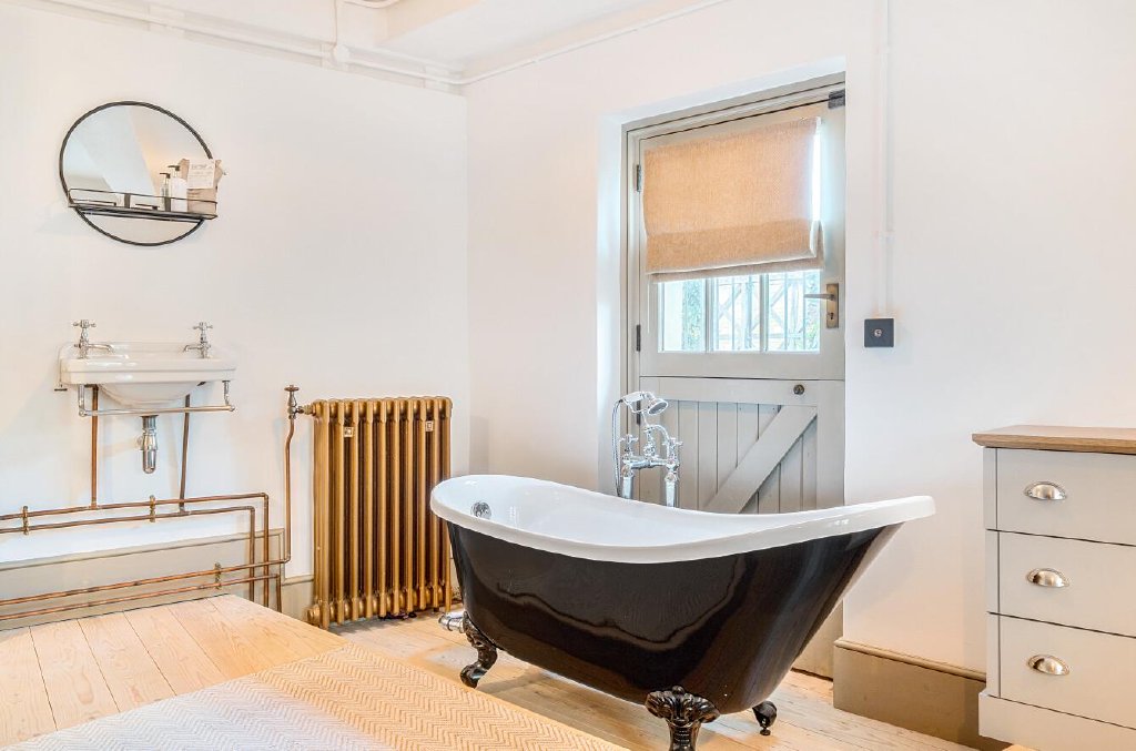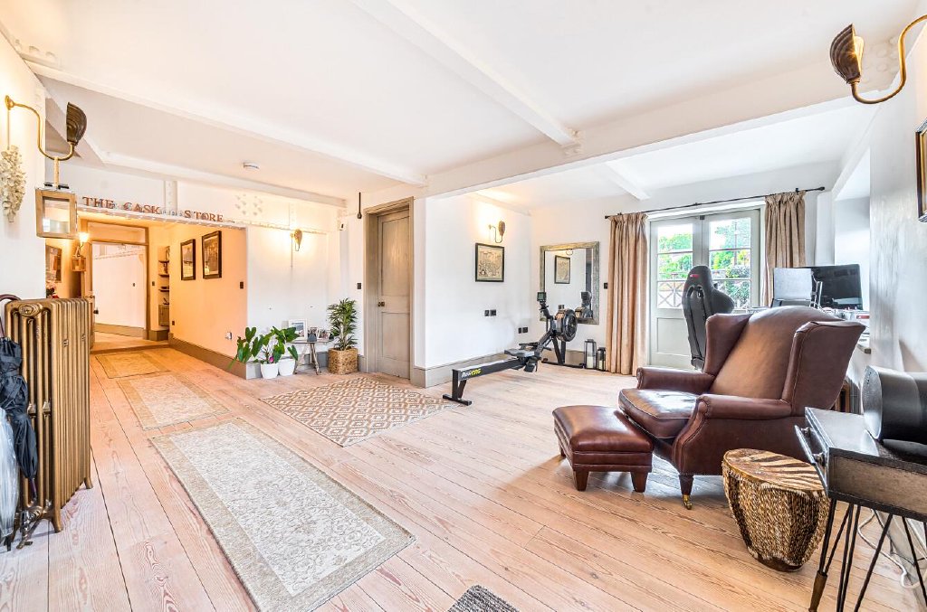 The property unfolds into three generous reception rooms that seamlessly flow between formal entertaining areas and more intimate spaces for quiet retreat. The open-plan kitchen and dining room is a masterpiece of bespoke design, perfect for both culinary creativity and convivial gatherings. Two luxurious double bedrooms each enjoy their own exquisite en suite, one featuring a classic roll-top bath, the other offering a sleek shower, ensuring comfort and privacy. For those seeking flexibility, there is potential to create a third bedroom, subject to the necessary consents.