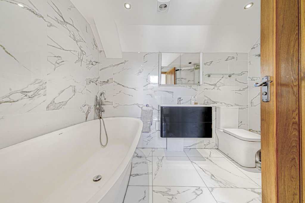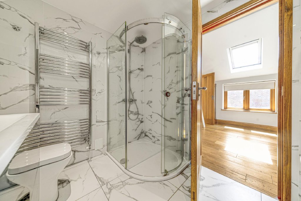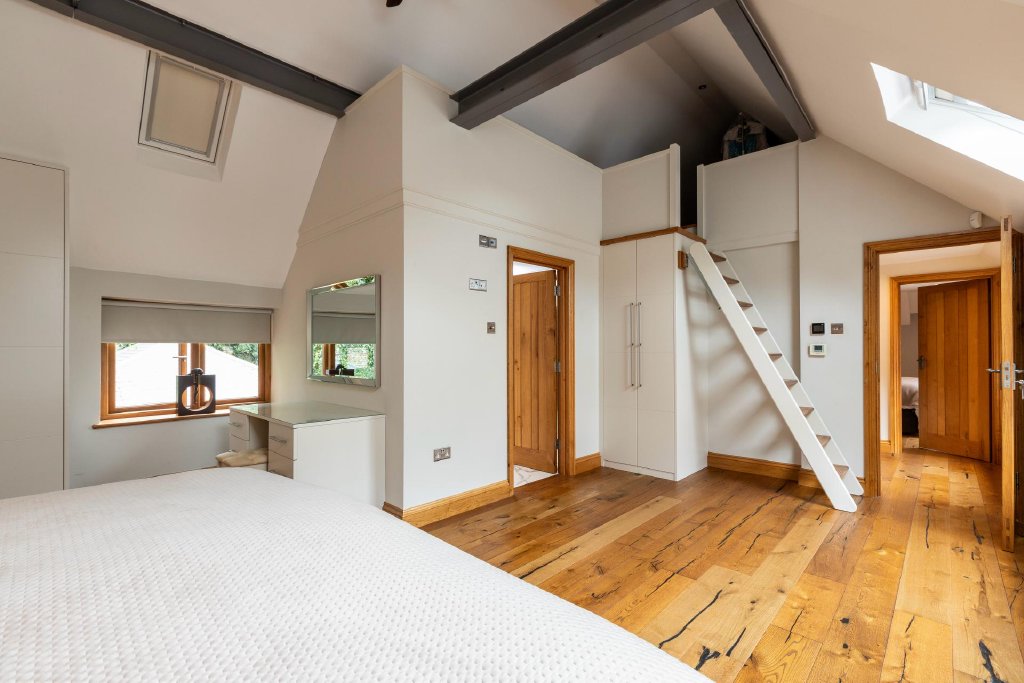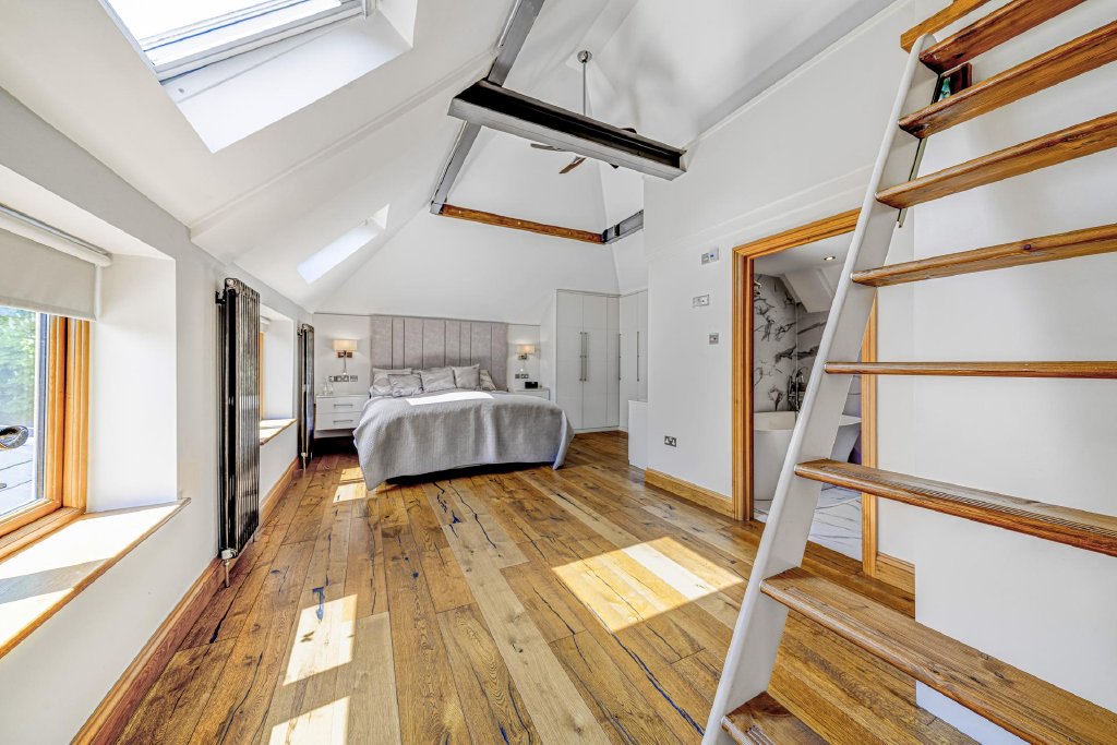 Upstairs the principal bedroom suite serves as a true sanctuary, featuring an ensuite bathroom with large Duravit roll top bath, walk-in shower, WC and a wash hand basin and an elegant mezzanine dressing area. In addition, there are three further bedrooms all of which benefit from en-suite shower rooms, ensuring comfort and privacy.