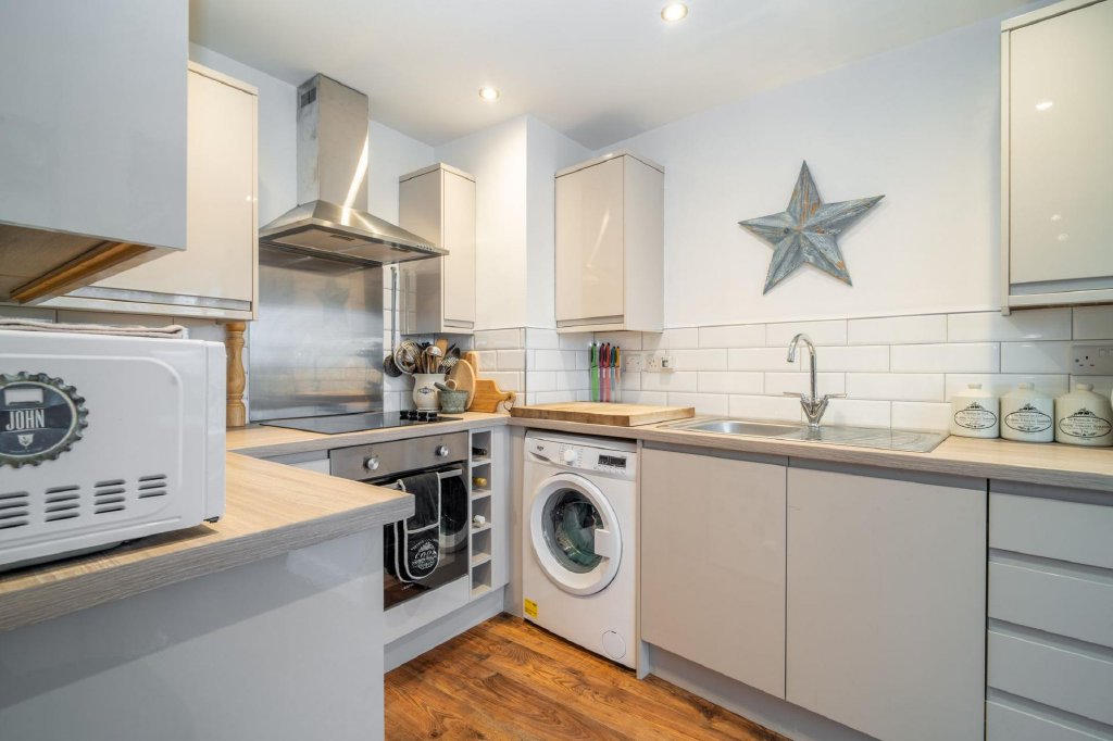 The accommodation comprises an inviting entrance hall leading through to a stylish open-plan lounge, forming the heart of the home, together with a well-appointed kitchen, contemporary bathroom, conservatory and two generous double bedrooms. The property enjoys a wealth of character throughout, enhanced by oak internal doors, double glazing and oil-fired central heating powered by a Worcester-Bosch boiler.