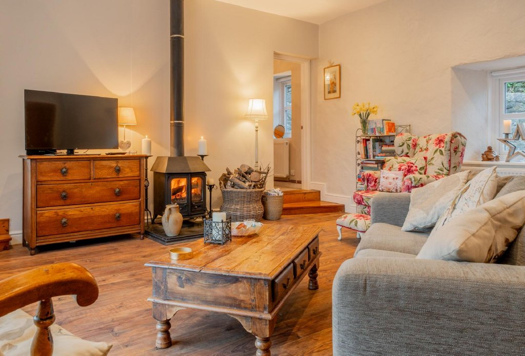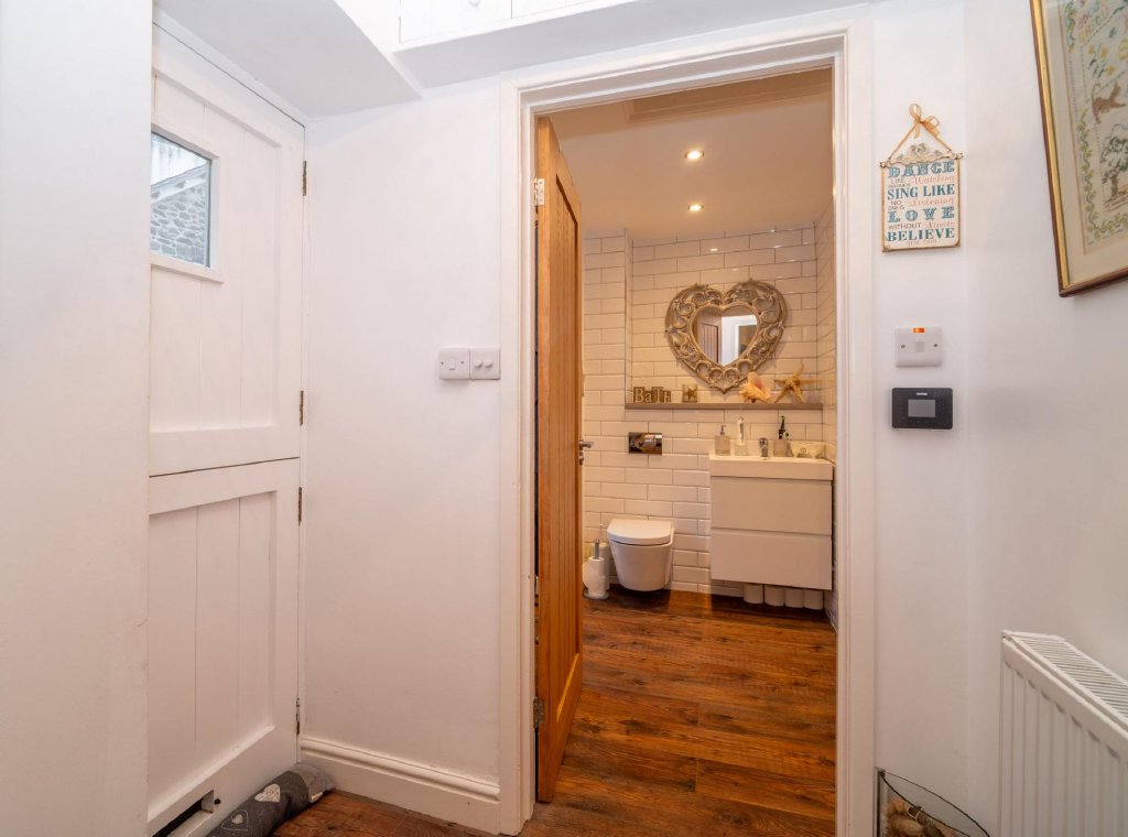 Externally, the cottage benefits from a spacious garden and grounds, providing an ideal setting to relax and enjoy the coastal outlook. Private parking and a garage add further practicality, while the traditional slate roof complements the home’s timeless appeal.