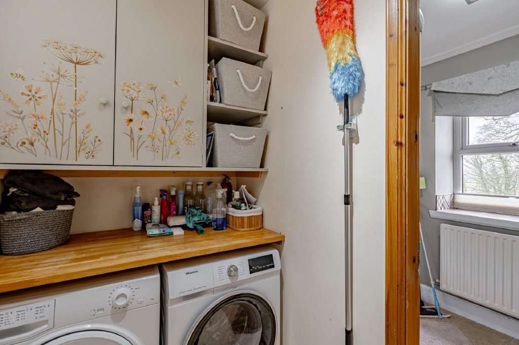 Adjacent to the kitchen is a useful laundry room, with included washing machine and tumble dryer and storage above, leading through to a ground floor shower room comprising a generous shower cubicle, WC, wash hand basin and tiled floor.