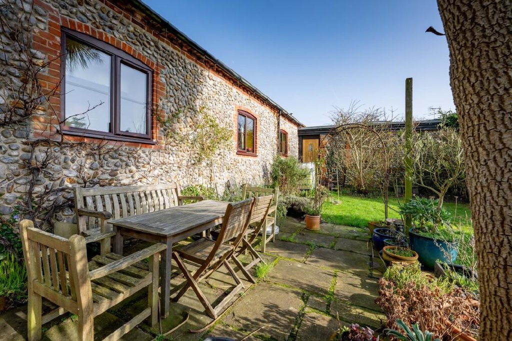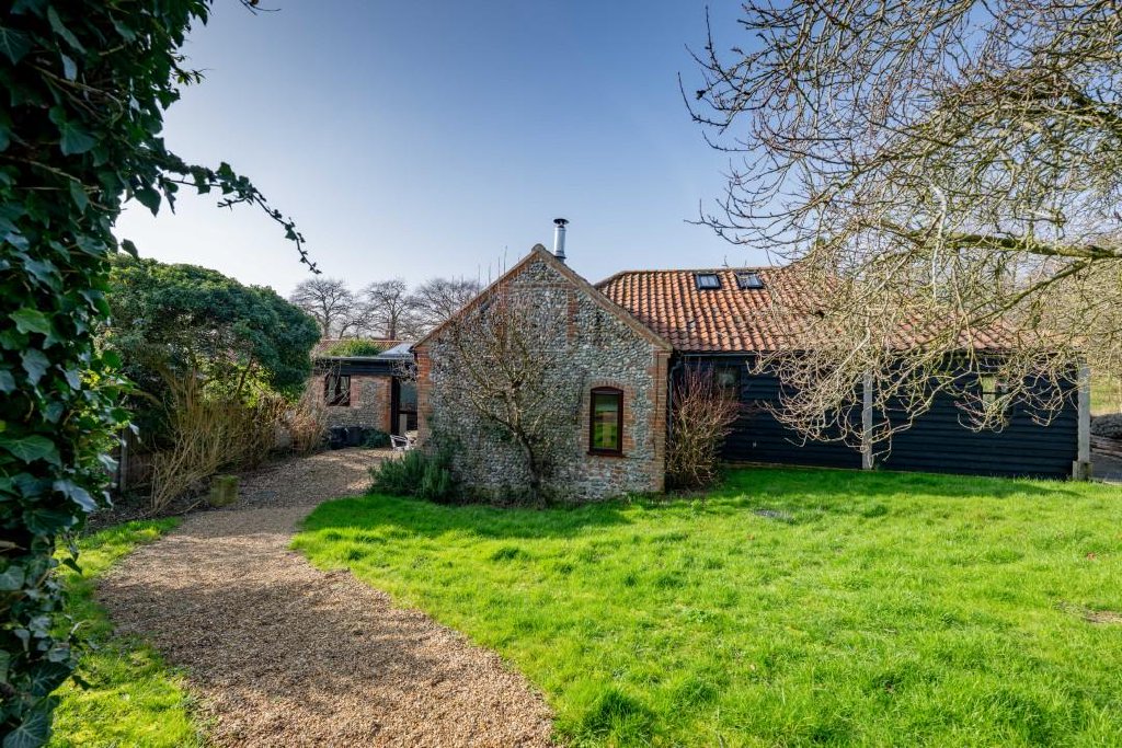 GUIDE PRICE £850,000 - £900,000. With wonderful church views this extended barn conversion enjoys a secluded position in a desirable North Norfolk village, blending historic flint and brick character with modern comforts and expansive orchard grounds. The single-storey layout provides versatile accommodation, having been fantastically renovated by the current owner, including a self-contained holiday let wing that has proven successful for over a decade. Alternatively perfect for multigenerational living or just a great family home. With church views and over an acre of wildlife-rich gardens, it offers a peaceful retreat moments from the coast. EPC B