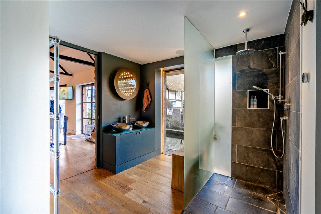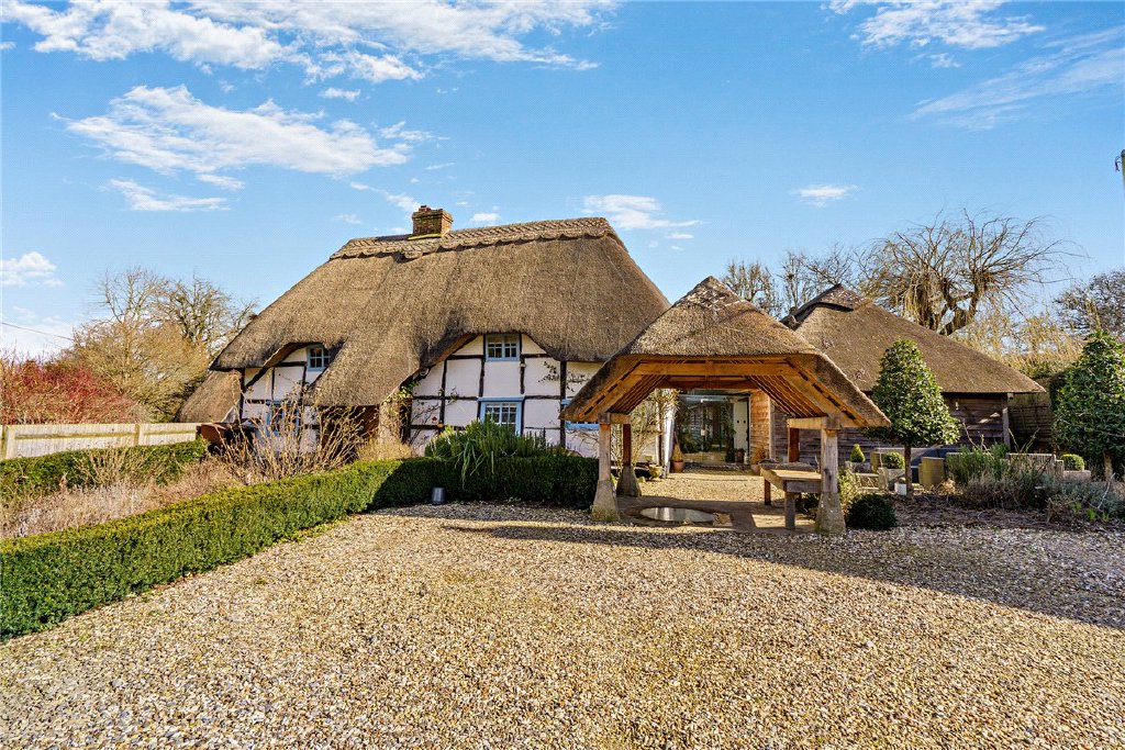 Bridgemans is a detached thatched property that has been beautifully renovated and extended by the current owners and now offers a wonderful mix of character and charm with modern and contemporary practicalities. Recently re-thatched and with electric blinds throughout. The old cottage dates back to the 16th Century with lovely character features, open fireplaces and wall and ceiling beams with three reception rooms and ground floor bathroom and three bedrooms and shower room to the first floor. A glazed walkway links to the extension, a suburb improvement with 28 ft vaulted kitchen/diner, utility and a wonderful principal bedroom suite with ensuite shower and dressing area and additional freestanding bath.