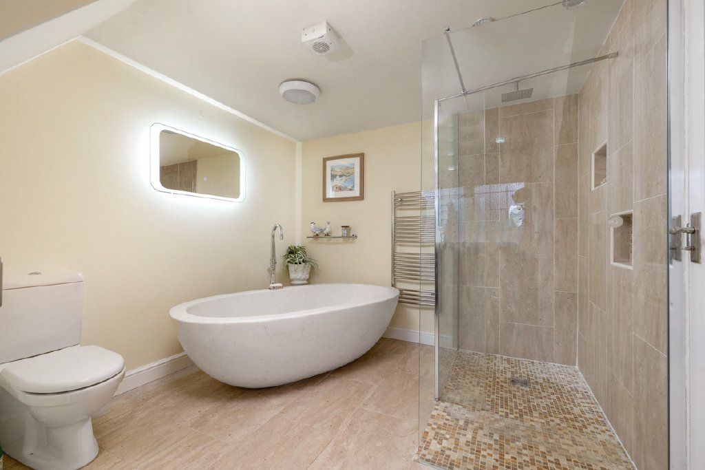 Separate from the main house, the first-floor annexe offers an excellent and versatile addition to the property which comprises of a dining kitchen, spacious lounge, two double bedrooms, family bathroom and a separate WC. As previously mentioned, this space could perfectly suit a variety of uses such as for multi-generational living, guests or by continuing its current use as a reputable holiday let with the relevant permissions already in place.