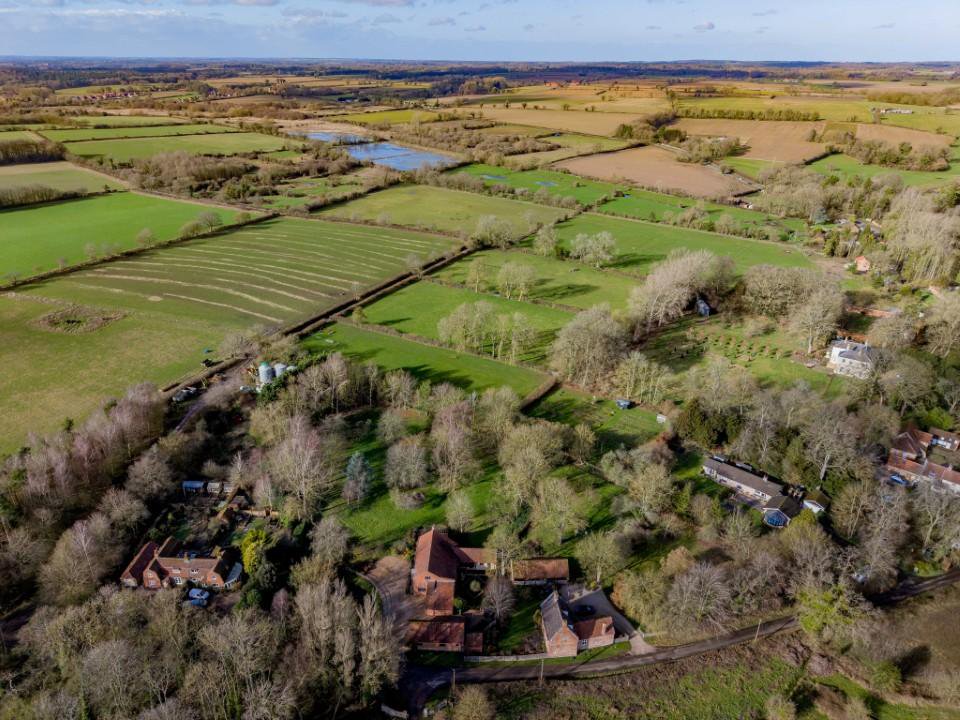 This truly exceptional converted barn captures the essence of Norfolk countryside living, blending historic farm architecture with generous internal spaces. Set within its own private plot approaching nine acres complete with parkland style gardens, a wildlife pond and three paddocks ideal for equestrian use, the property enjoys far reaching views. With an additional barn offering storage or stabling potential, it represents a unique prospect for those seeking a rural home with land in a sought-after village between vibrant market towns.