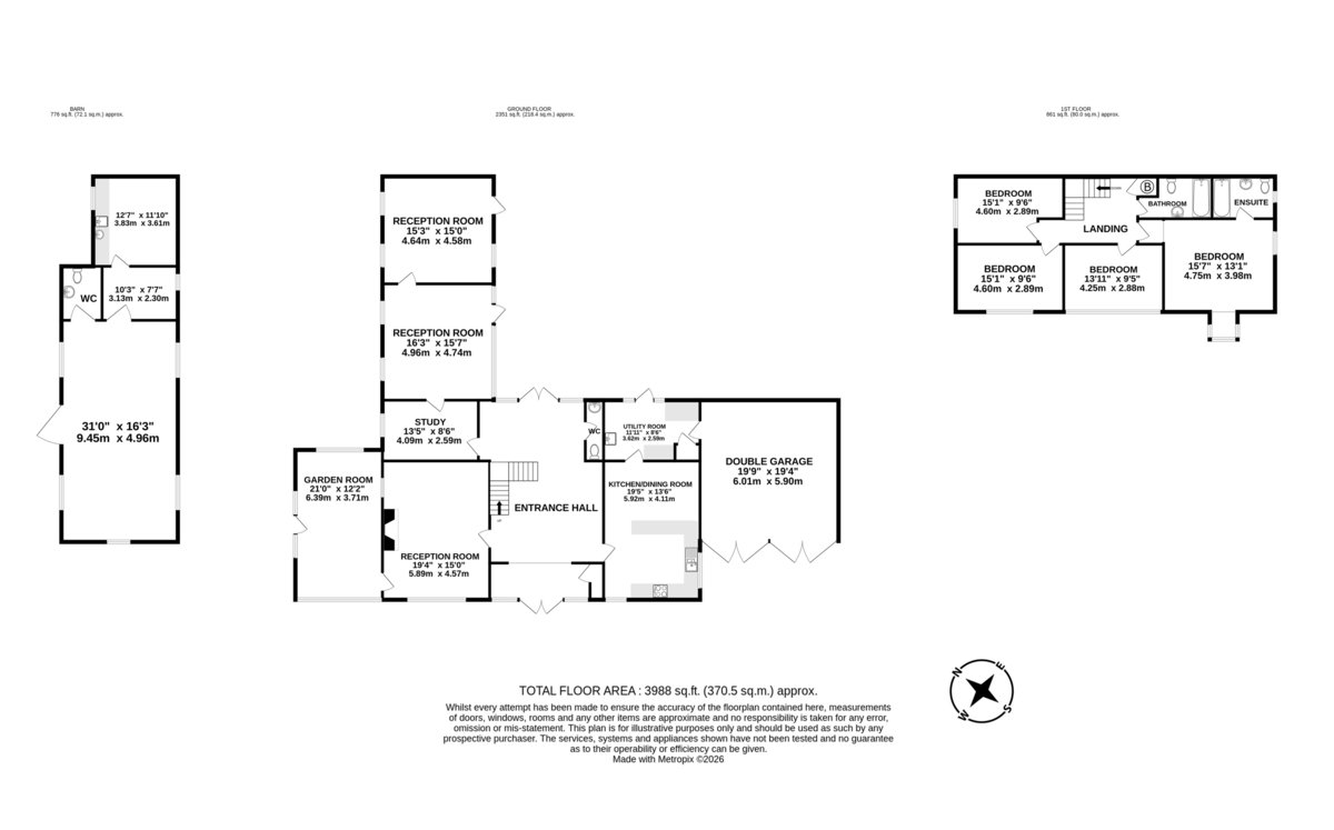 - Three Generous Reception Rooms plus a Garden Room and a Study