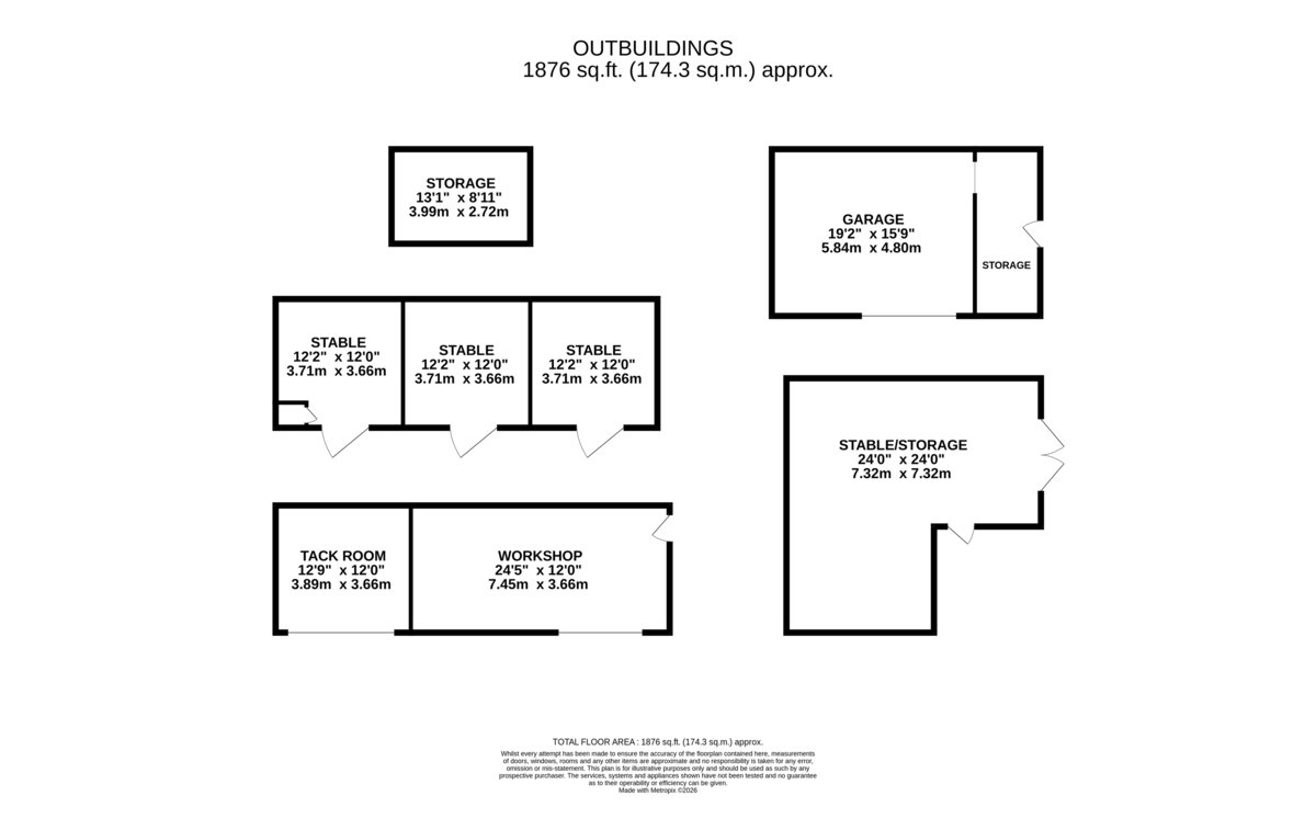- The Grounds extend to 6 acres (stms) with Paddocks, Turnout, Stables, Tack Room, Workshop and Stores