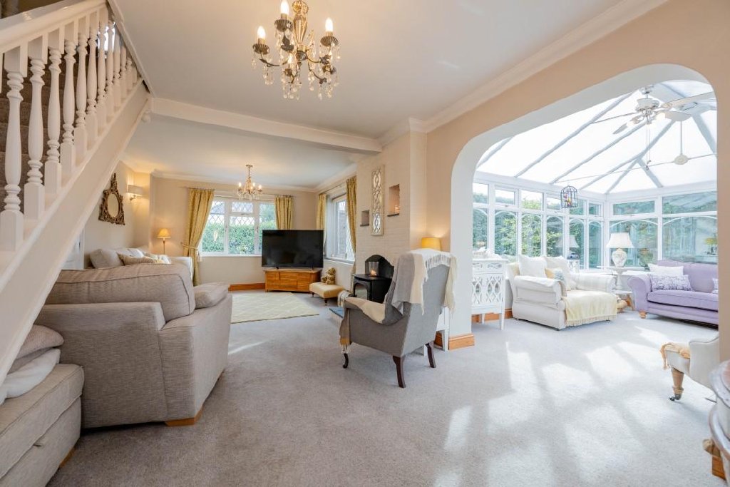 - Living Room with Log Burner open to the Conservatory
