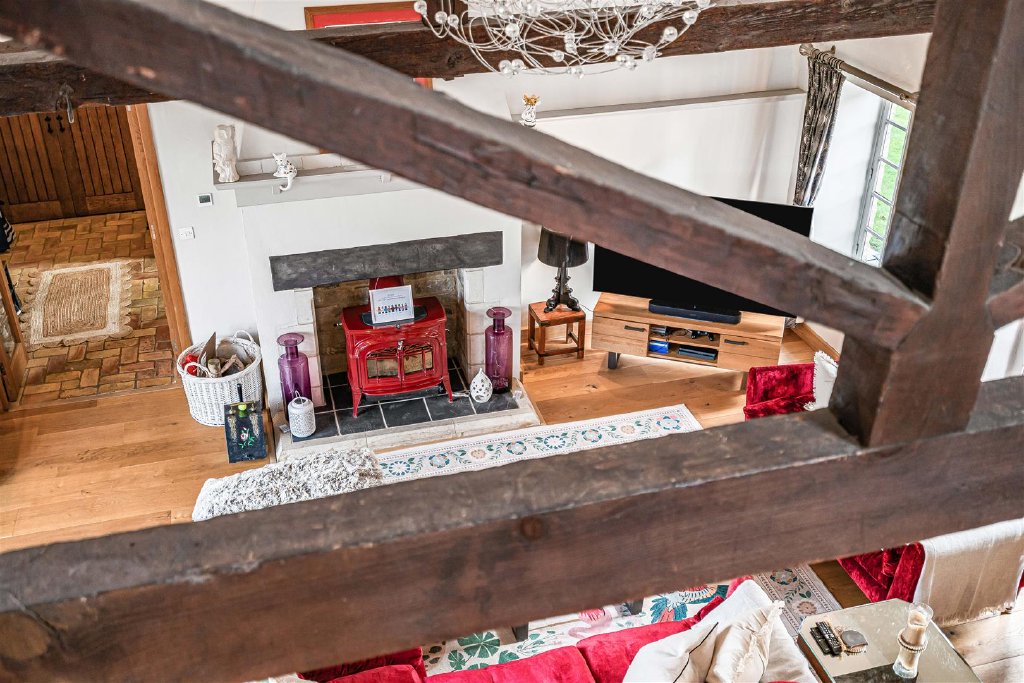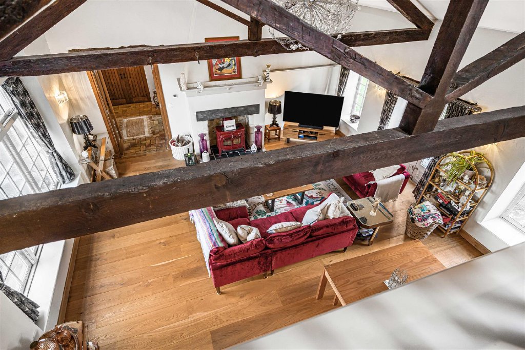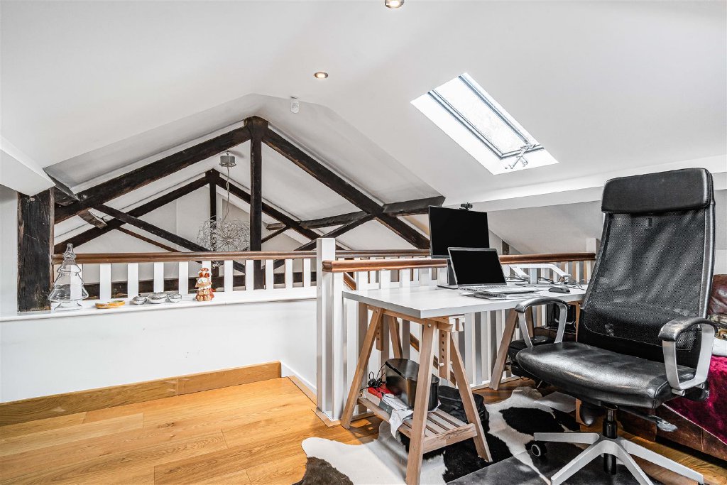 Stairs lead to the first floor, which has a vaulted mezzanine living area that offers plenty of space for a family room/snug/study - perfect for a retreat or working from home.
