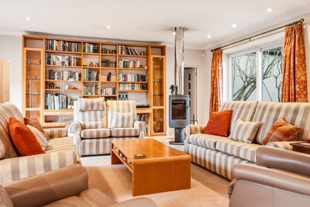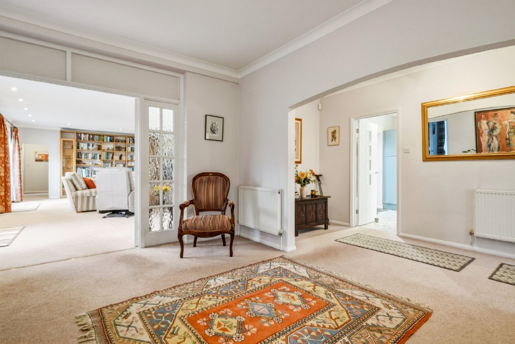 The accommodation is generous and flexible in layout. A front porch area opens onto the impressive hallway which gives access to the main reception room, a bright peaceful room with dual aspect patio doors opening onto patio area and gardens on both sides and boasting a feature contemporary wood burning fire. From the hallway there is access to a recently re-fitted kitchen with an excellent range of contemporary units, and quartz works surfaces, the kitchen opens to a lovely breakfast room with views over the walled garden and the utility room is off the breakfast room. The Dining Room is accessed via the main hallway and opens onto the 2nd bedroom with its own study/dressing room and ensuite facilities (this area could be self-contained). The principal bedroom with ensuite and remaining bedrooms/gym room and family bathroom are accessed via a hallway which leads from the main reception room.