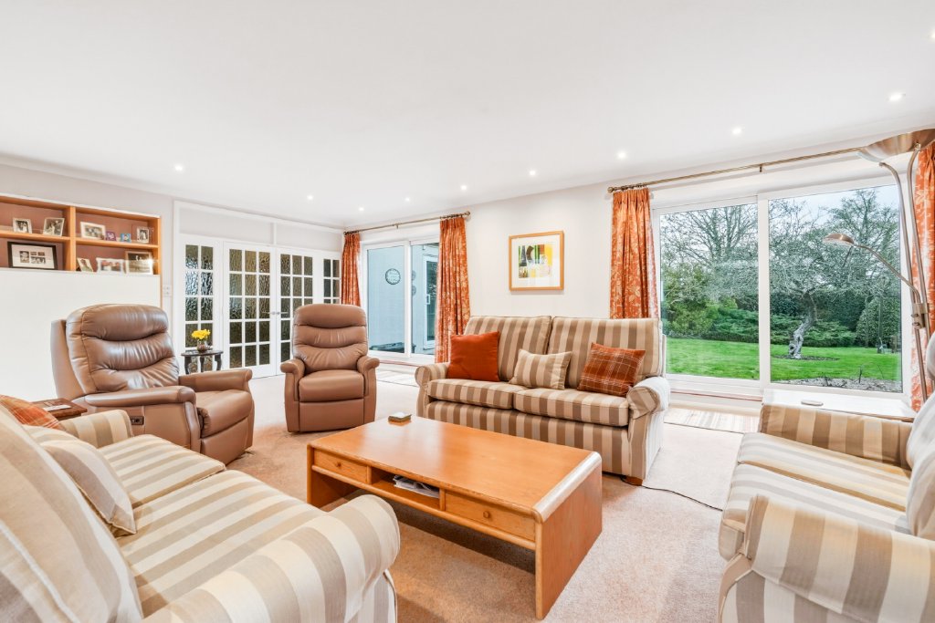 This deceptively spacious unique home is flooded with natural light from the many large window and patio doors which creates a peaceful very bright unique detached single story 45-bedroom residence offering flexible living accommodation, set well back from the road and approached via a quiet private drive of individual executive homes. The property boasts accommodation approaching 3000, sq ft with a bright expansive lounge, large separate dining room and impressive entrance reception room. There is a fully fitted bespoke kitchen with separate breakfast room, as well as a good utility room. The principal bedroom is extremely spacious and has en-suite shower room, there are 2 further double bedrooms one with en-suite and dressing/study area, a good-sized single bedroom and a further bedroom/gym or study there is also a family bathroom. Set within beautifully established grounds approaching one third of an acre with extensive garage facilities and parking for numerous vehicles. EPC RATING C.