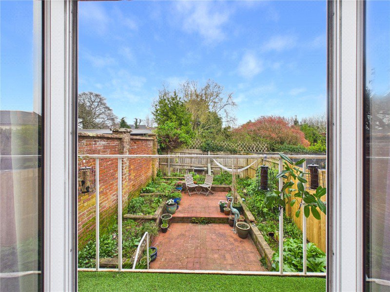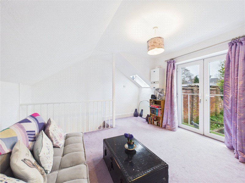 Upstairs, the property benefits from a spacious sitting room filled with natural light, along with a generous double bedroom. The sitting room enjoys access to a private balcony, offering an attractive outlook and providing a lovely spot to sit out and enjoy a morning drink, while further enhancing the light and airy feel of the accommodation.