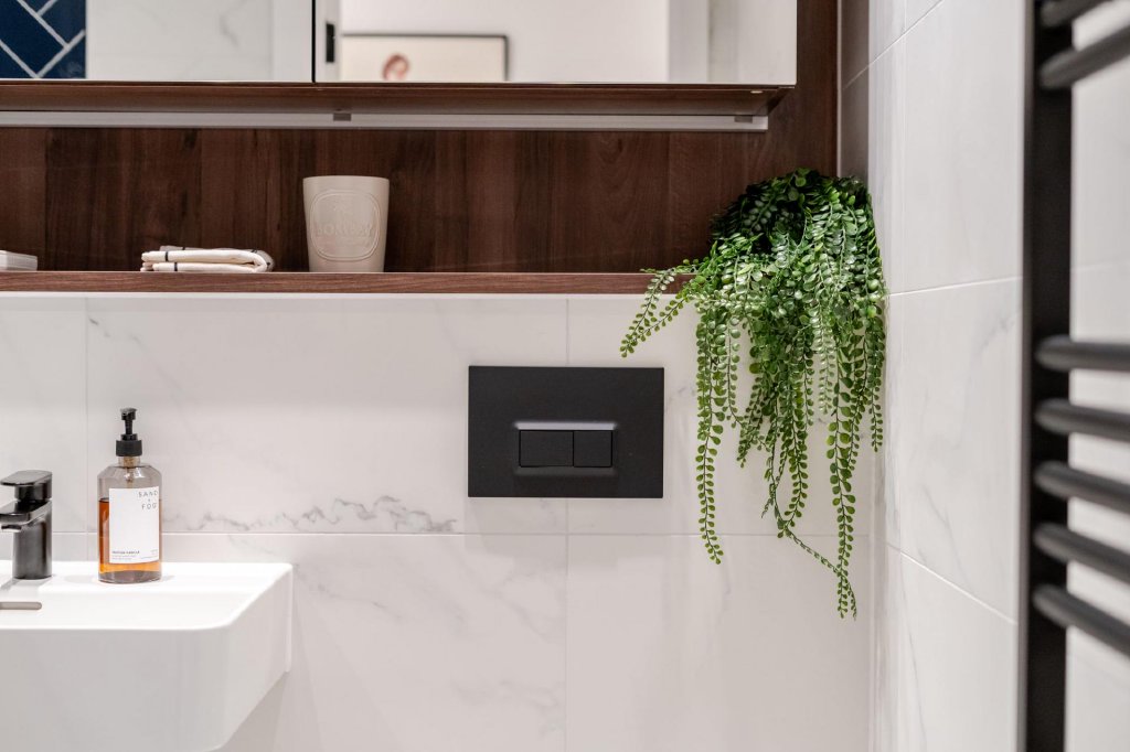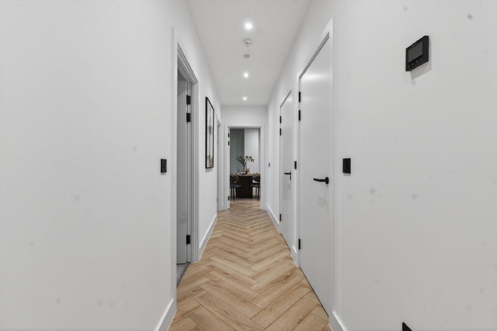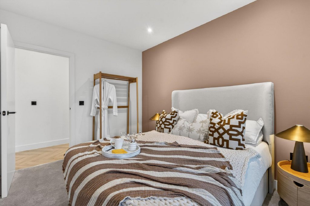 Three well proportioned bedrooms offer calm and comfortable retreats, complemented by stylish bathrooms finished with full height tiling, rain head showers and contemporary Hansgrohe fittings.